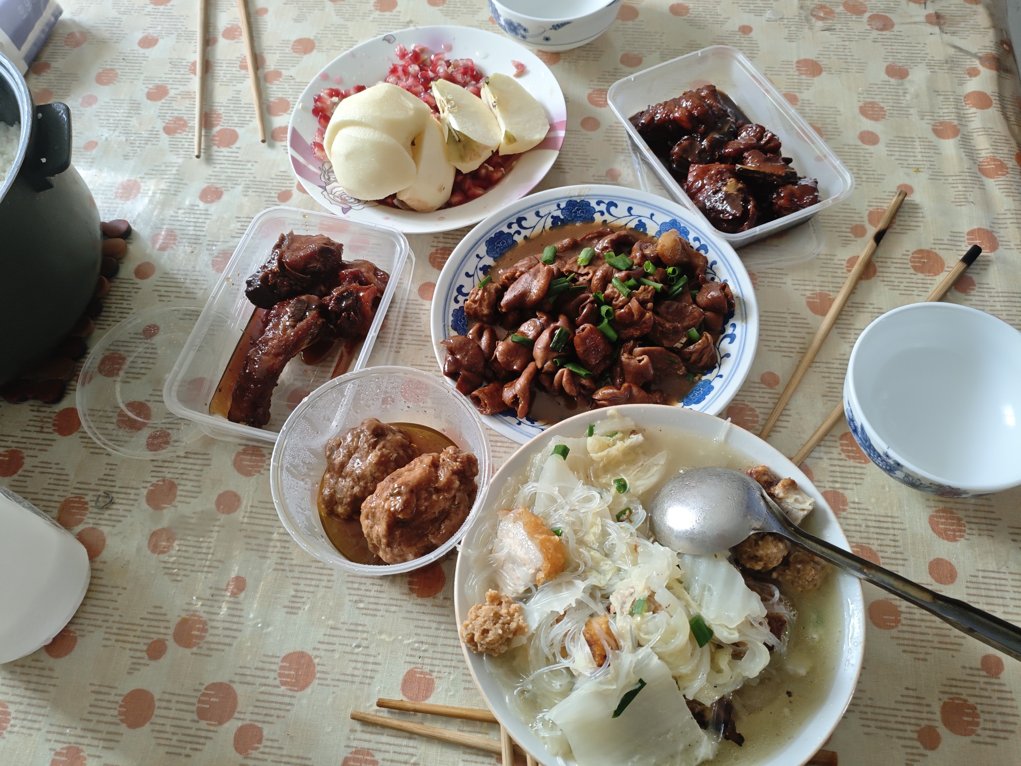 带过来的排骨和狮子头