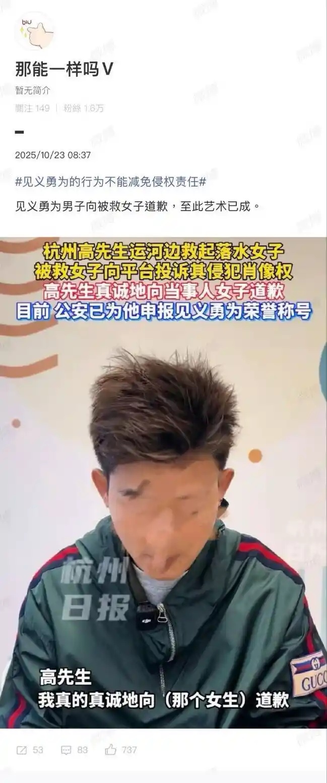 见义勇为男子向落水女子道歉