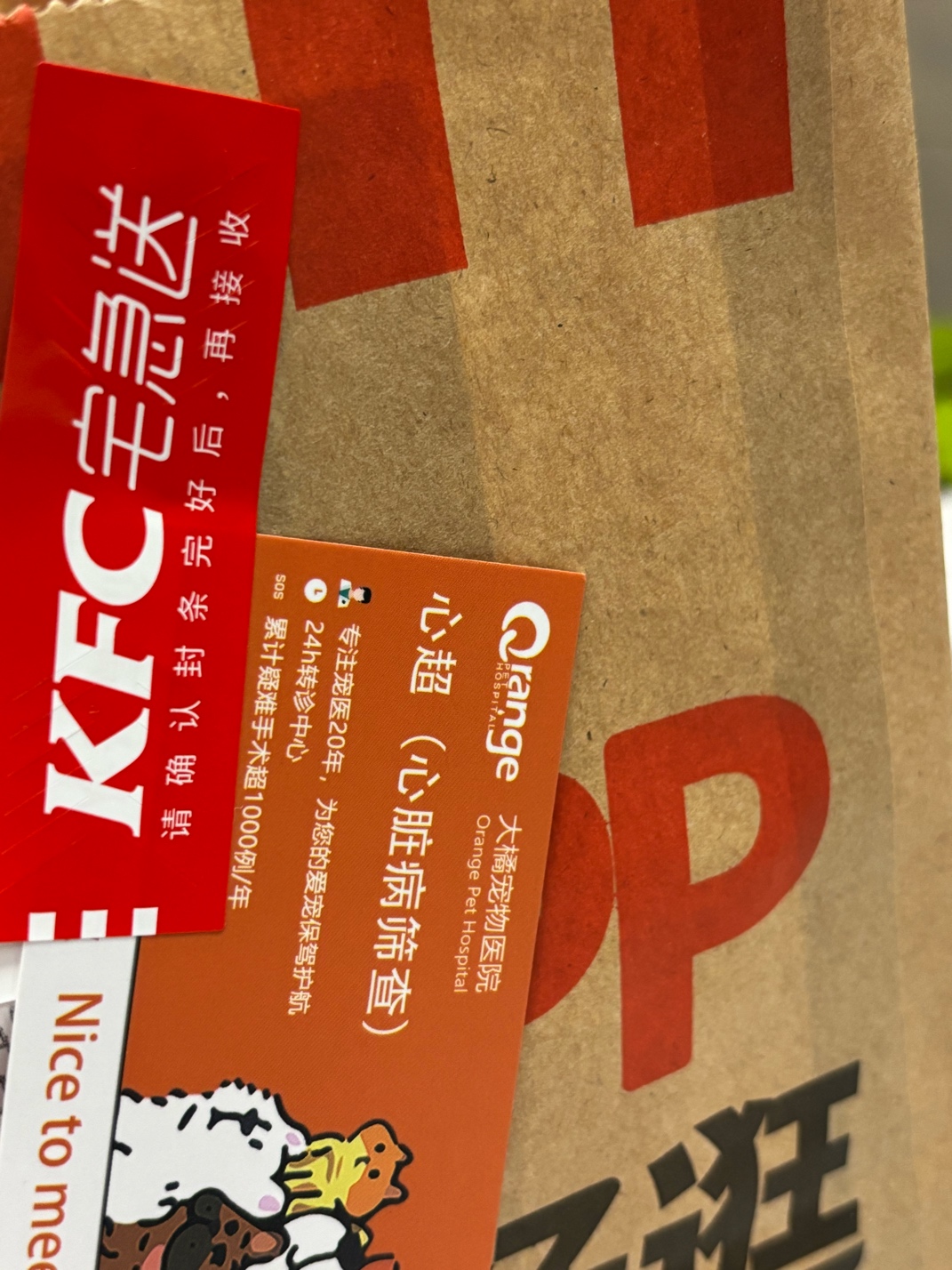 肯德基自取袋都开始给宠物医院打广告了