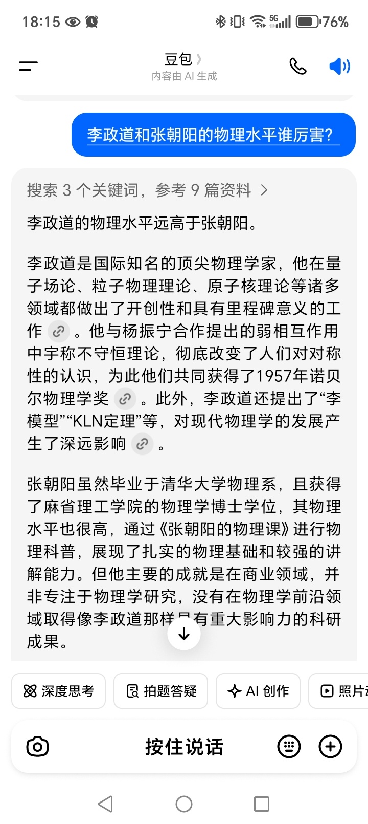 谁都知道李厉害,毕竟一年博士不计其数,一年获诺奖也就两三个人。但还是想看看豆包的回答。