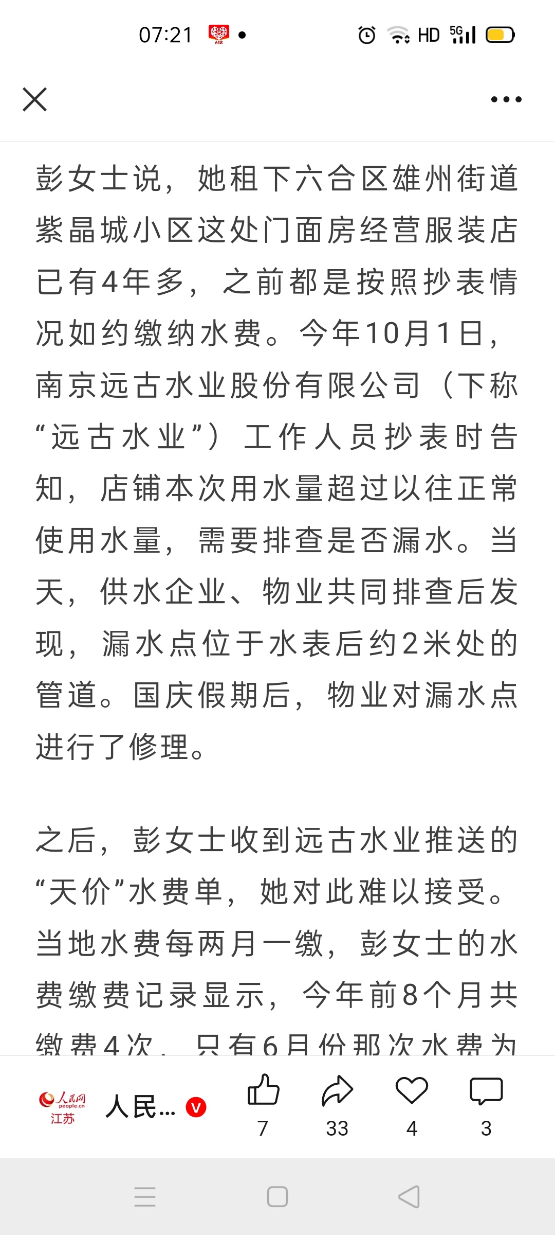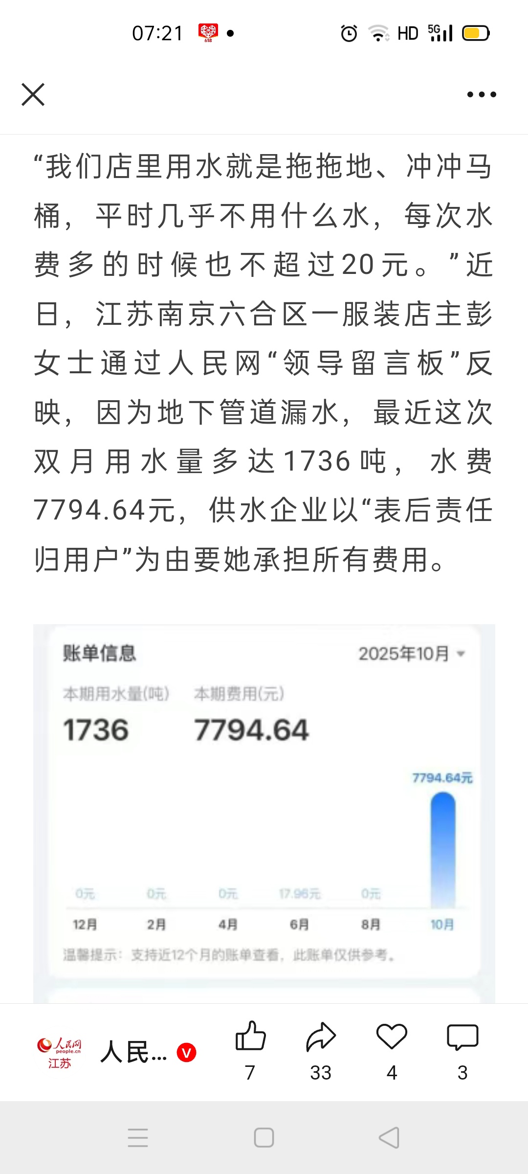 南京六合一服装店表后管道漏水,“天价”水费该谁埋单?