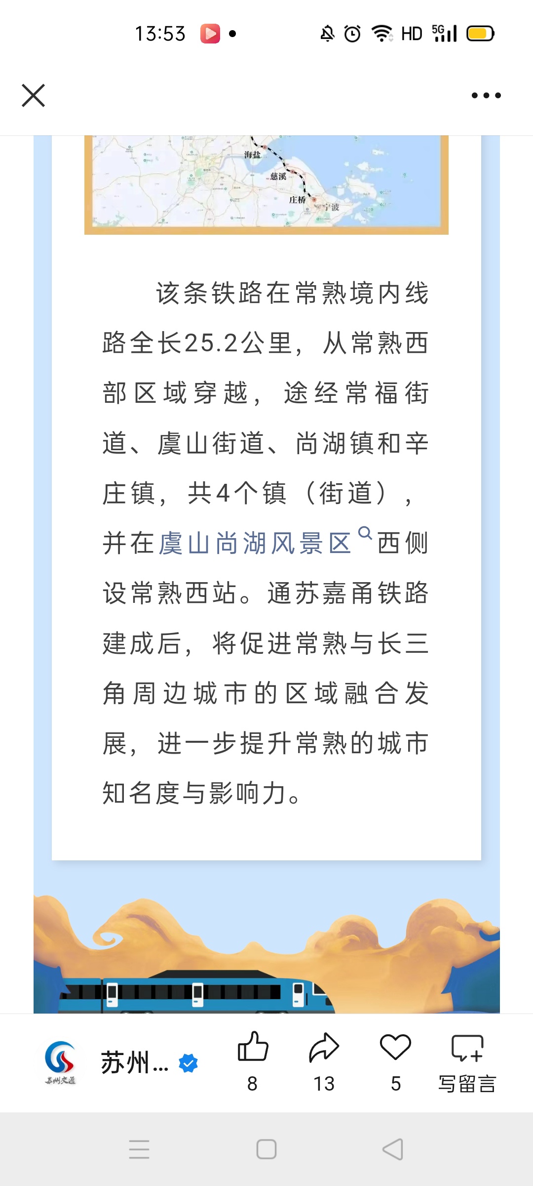 张家港到苏州的地铁应该是张家港市区,到张家港站,到常熟西站,然后到苏州北站接入苏州市区地铁网,而不是绕道海虞镇的10号线。