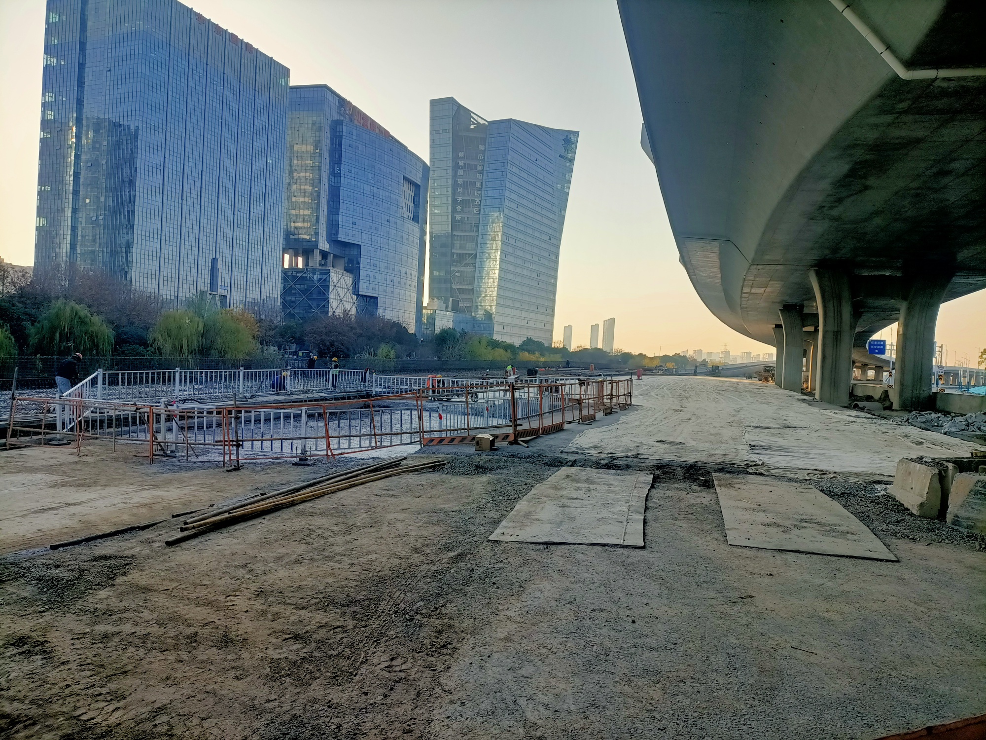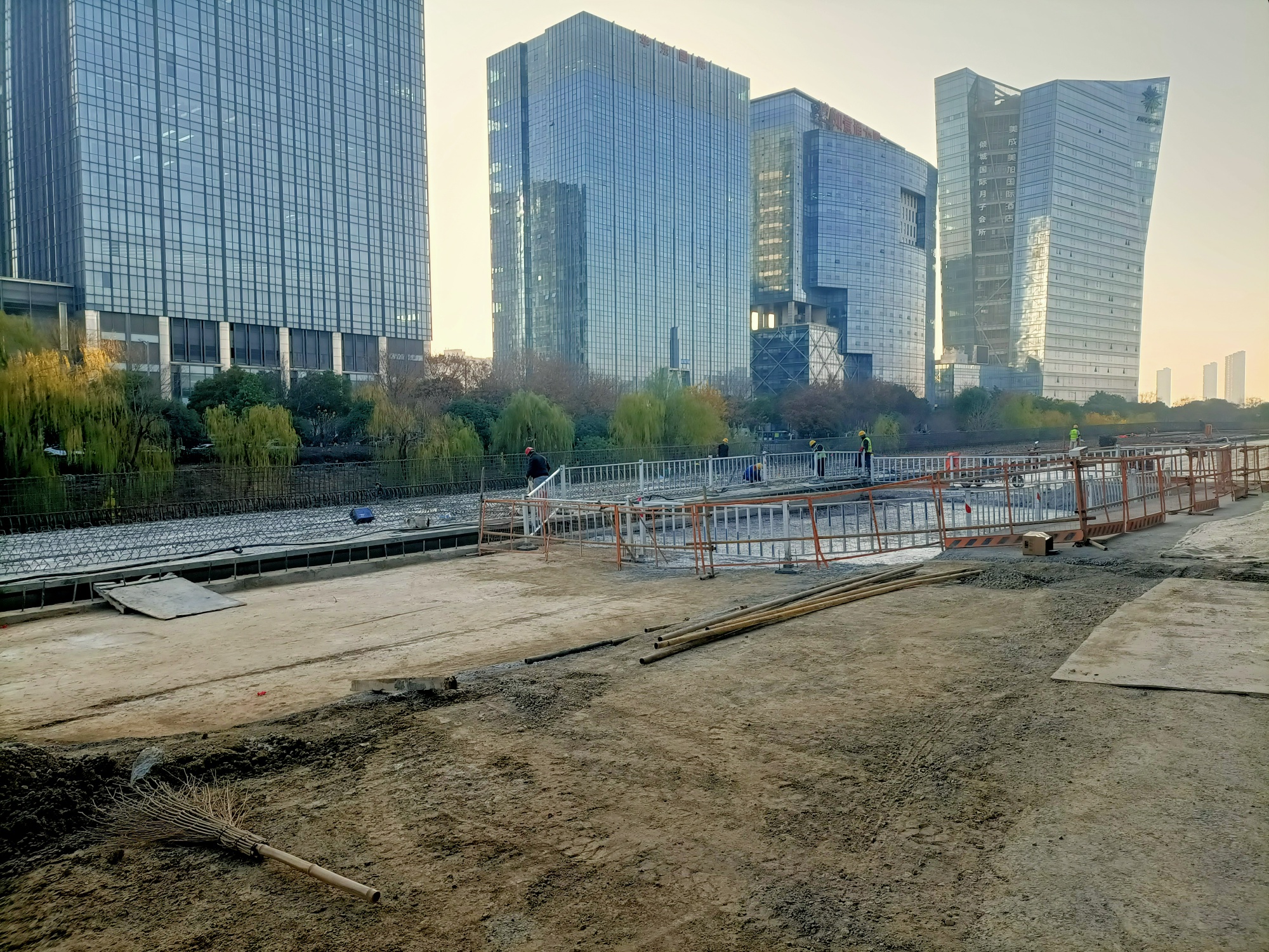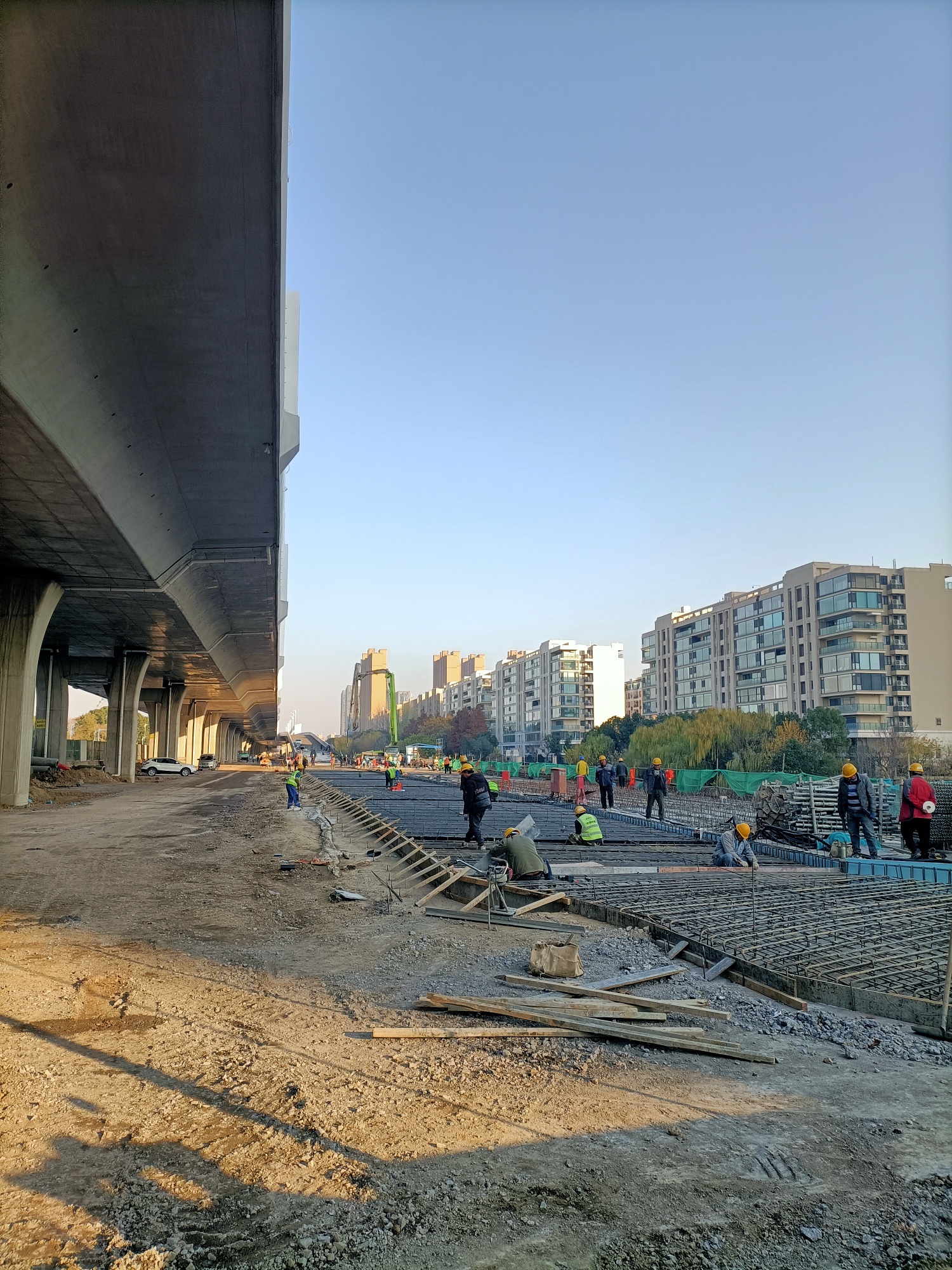 金港大道至港城大道至长安南路段南半幅沿河桥梁工程建设者们全力以赴快速推进!