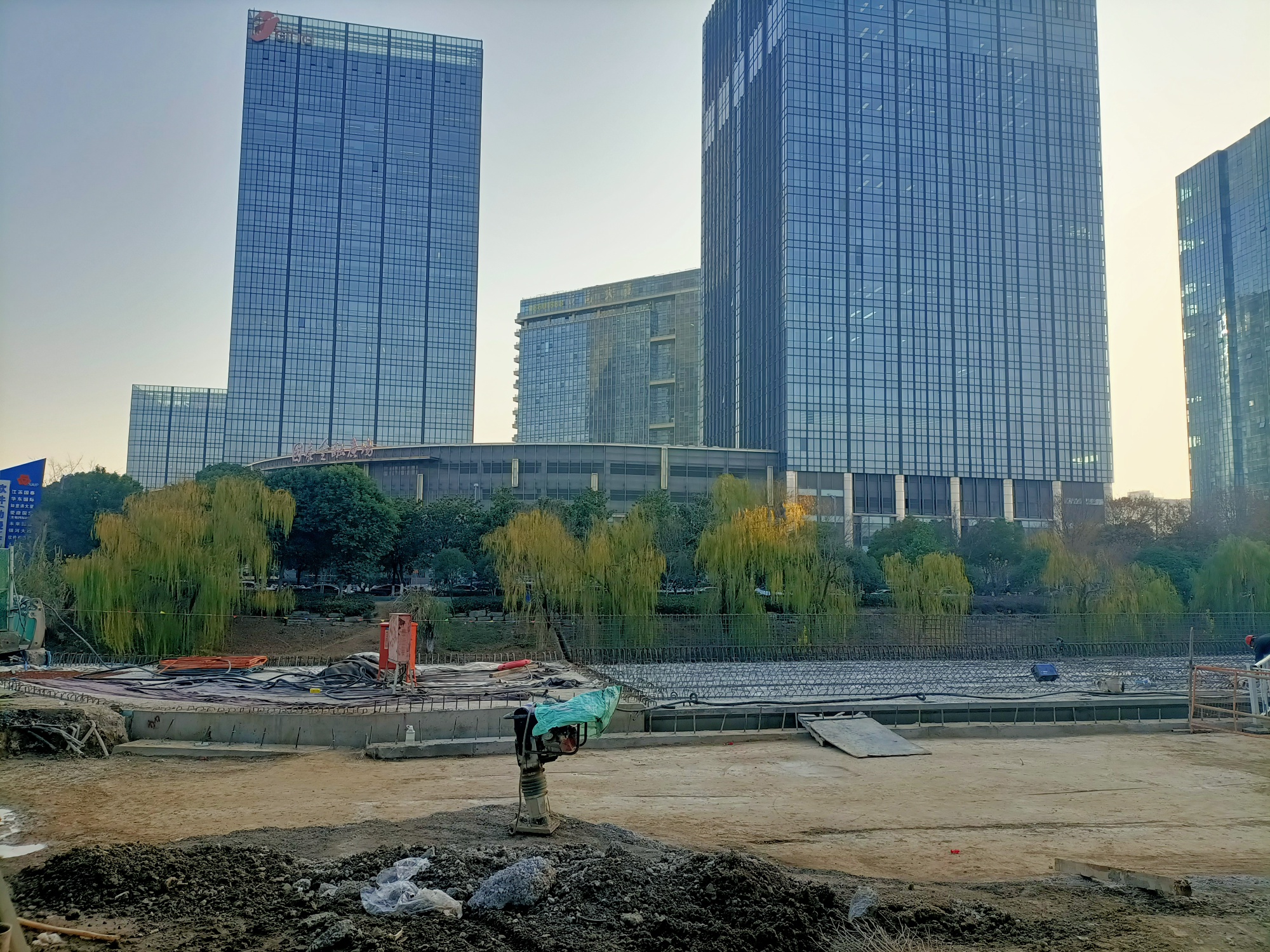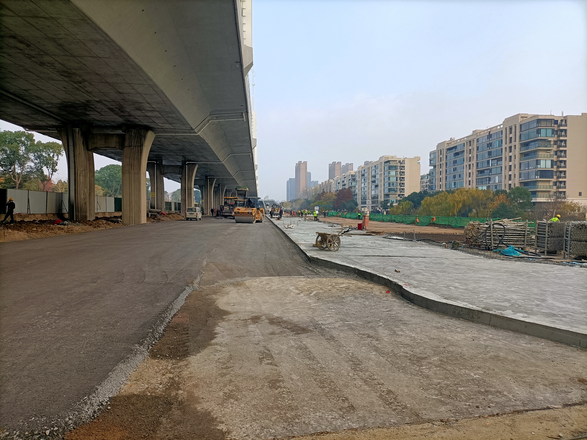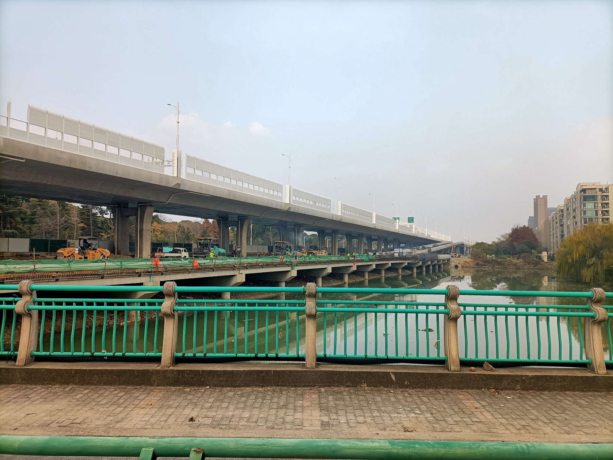金港大道至港城大道至长安南路段南半幅沿河桥梁工程建设者们全力以赴快速推进!