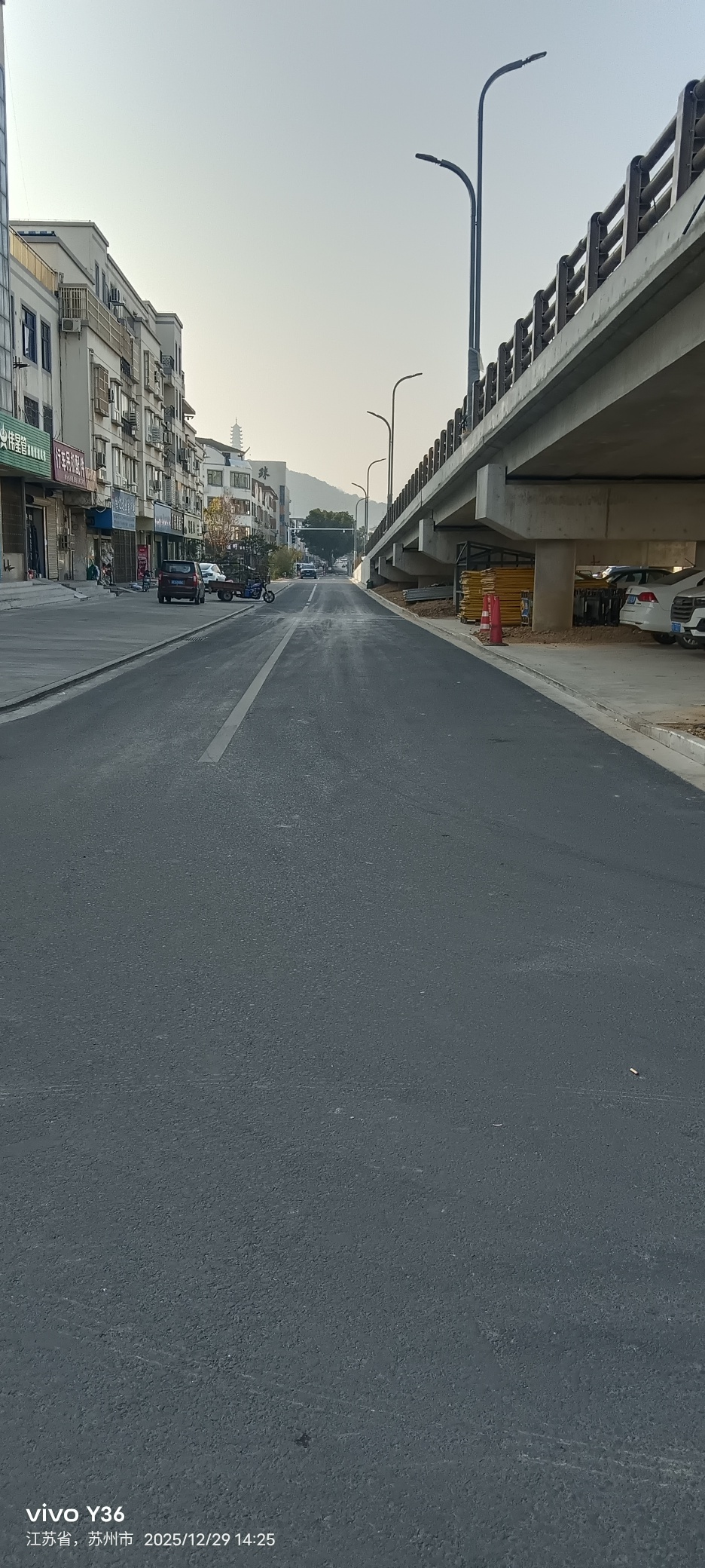 原来是双车道,没有非机动车道,有顶棚的非机动车道是后来建的