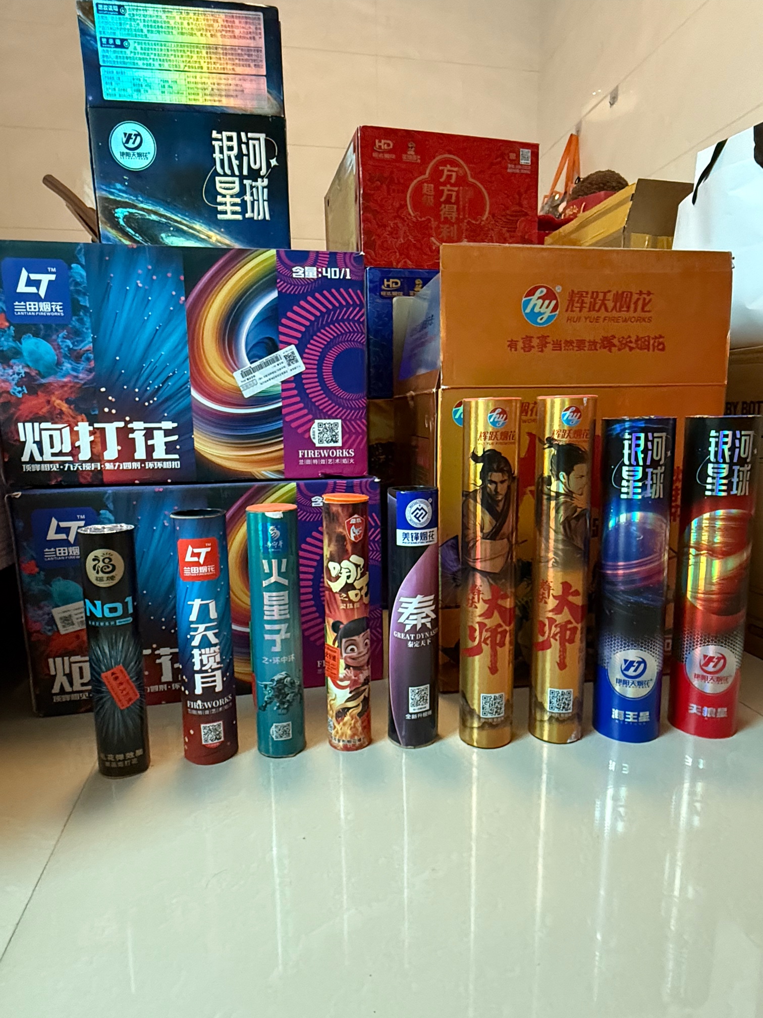 突然想起去年买的加特林还剩半箱,过年正好放了。