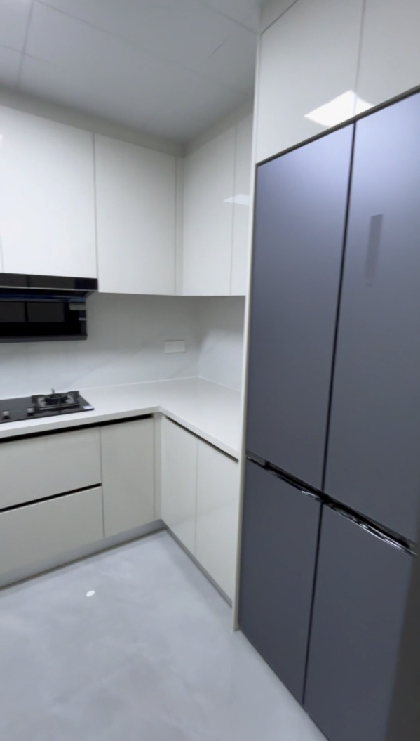 改造后:采用现代简约风格,白色橱柜搭配灰色家电,空间明亮开阔,动线合理,提升了使用舒适度。