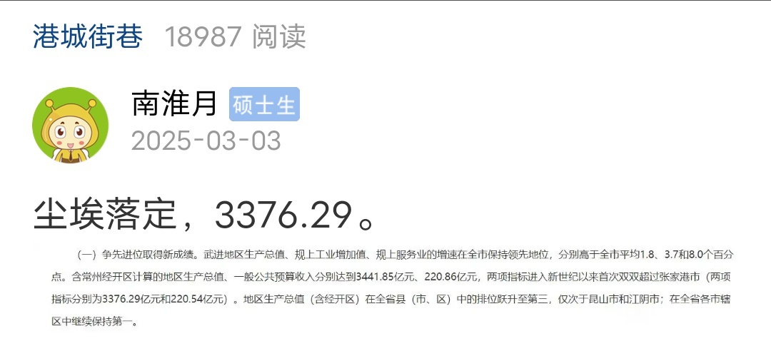 藏了一年,果然是3376.29,24年的GDP基本都是25年年初公布,也就张家港放到26年公布。另外,你这个25年成绩单又是藏着掖着,只敢公布个实际增速,具体数据还是不敢公布
