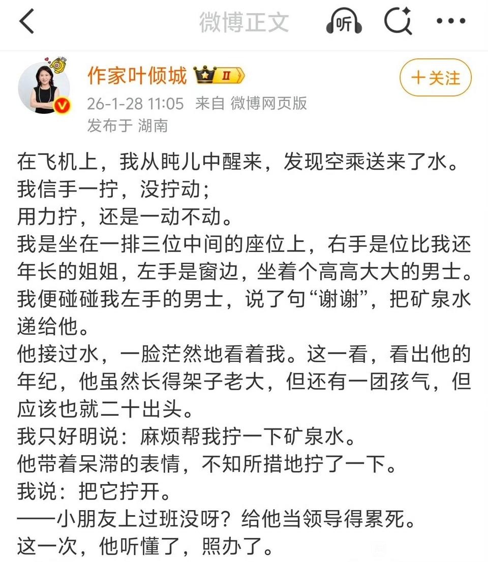 要求素不相识的男士帮她拧瓶盖,直接递过去不明说,给人家搞的一头雾水,并且还发文嘲讽他没上过班,“给他当领导得累死”