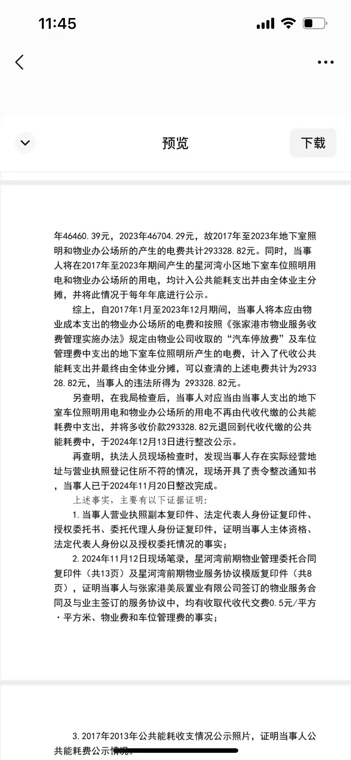 29万电费画面给业主吗