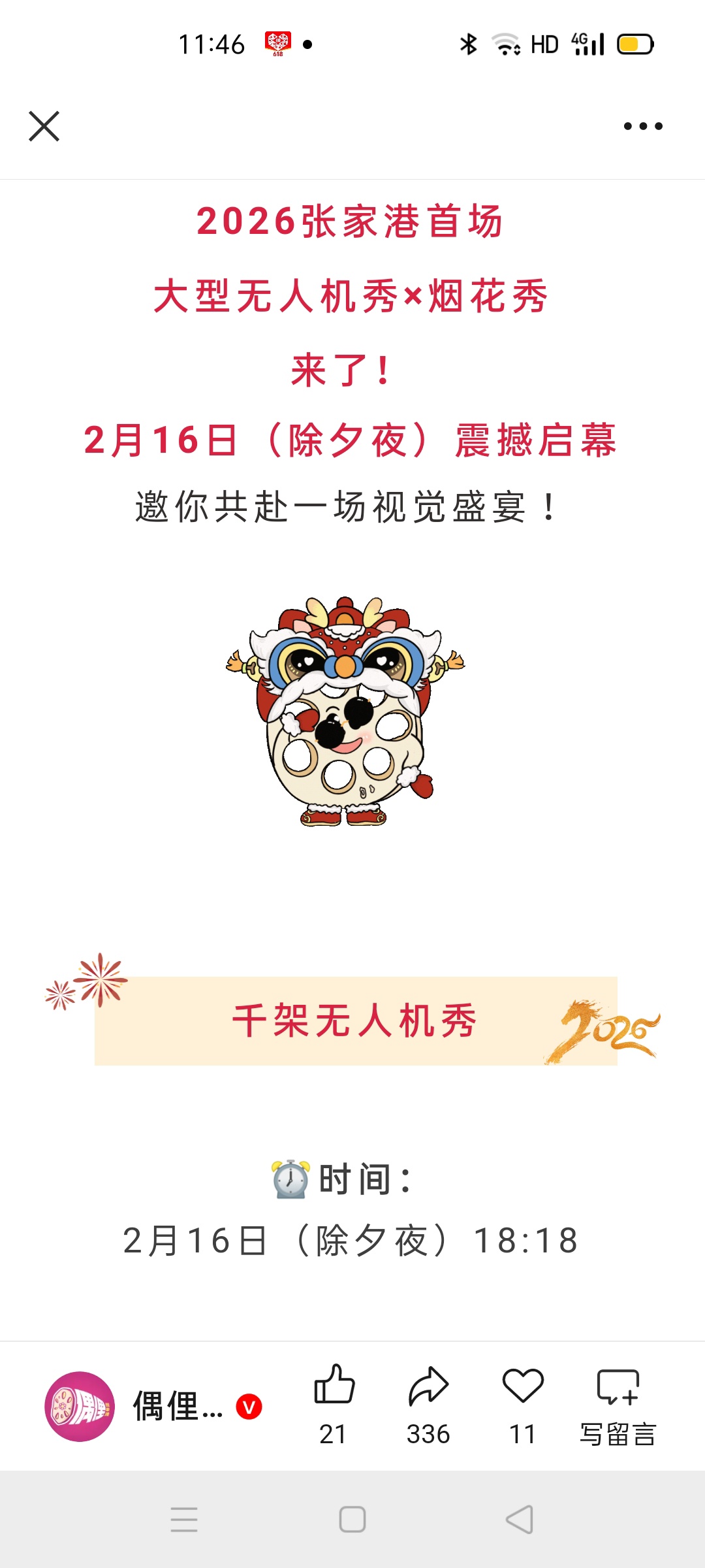 2026张家港首场无人机秀,来了!