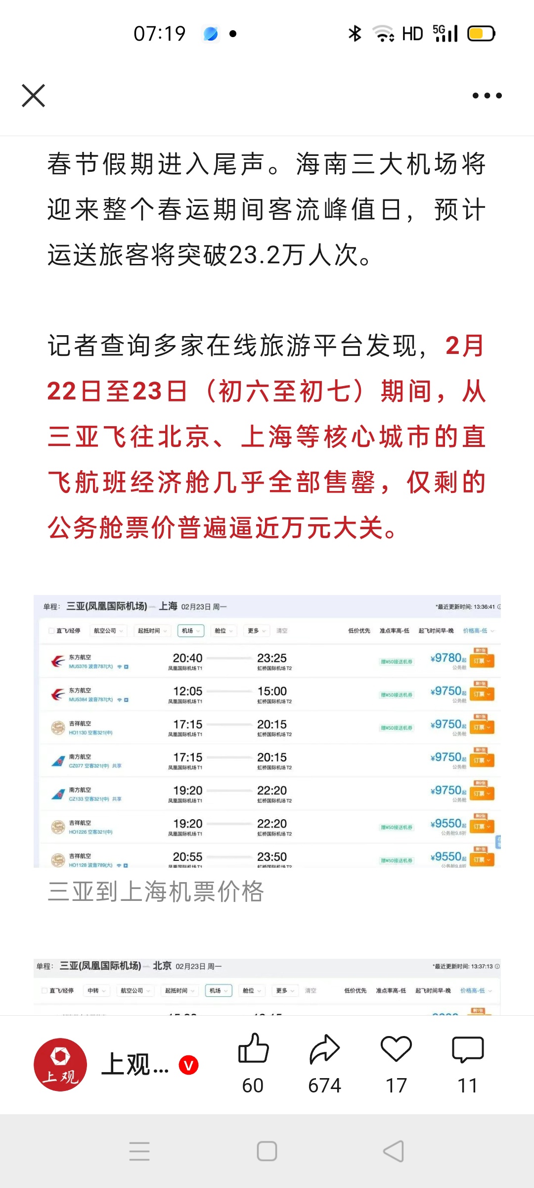 “没有一万元别想从三亚回来”?中国民航局批复:增加超110架次航班!精准执飞上海
