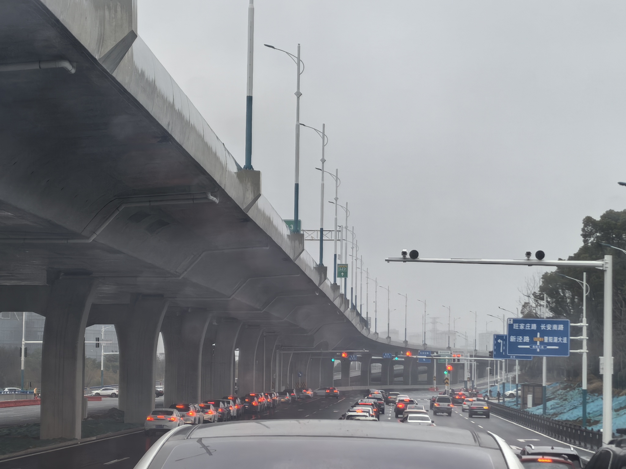 这边路口的灯和道设置的都不合理,从高架下来的车,对向车道左转的车要是不悠着点开,都能撞一起