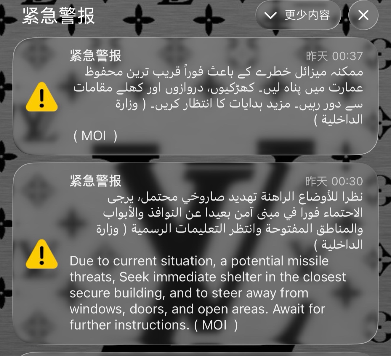 由于迪拜处在阿布扎比美军基地和伊朗中间,导弹和战斗力时常会从附近上空飞越,虽然知道不会有什么危险,但这里的我们和家乡的亲戚朋友难免会担心。关心的信息也铺天盖地。
