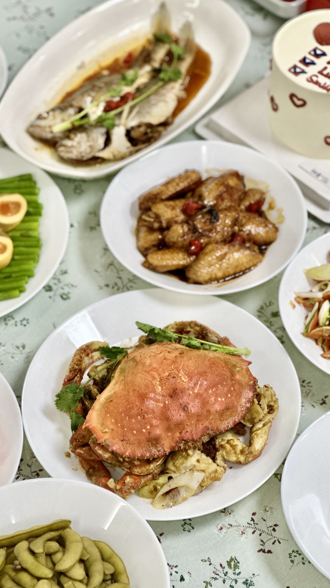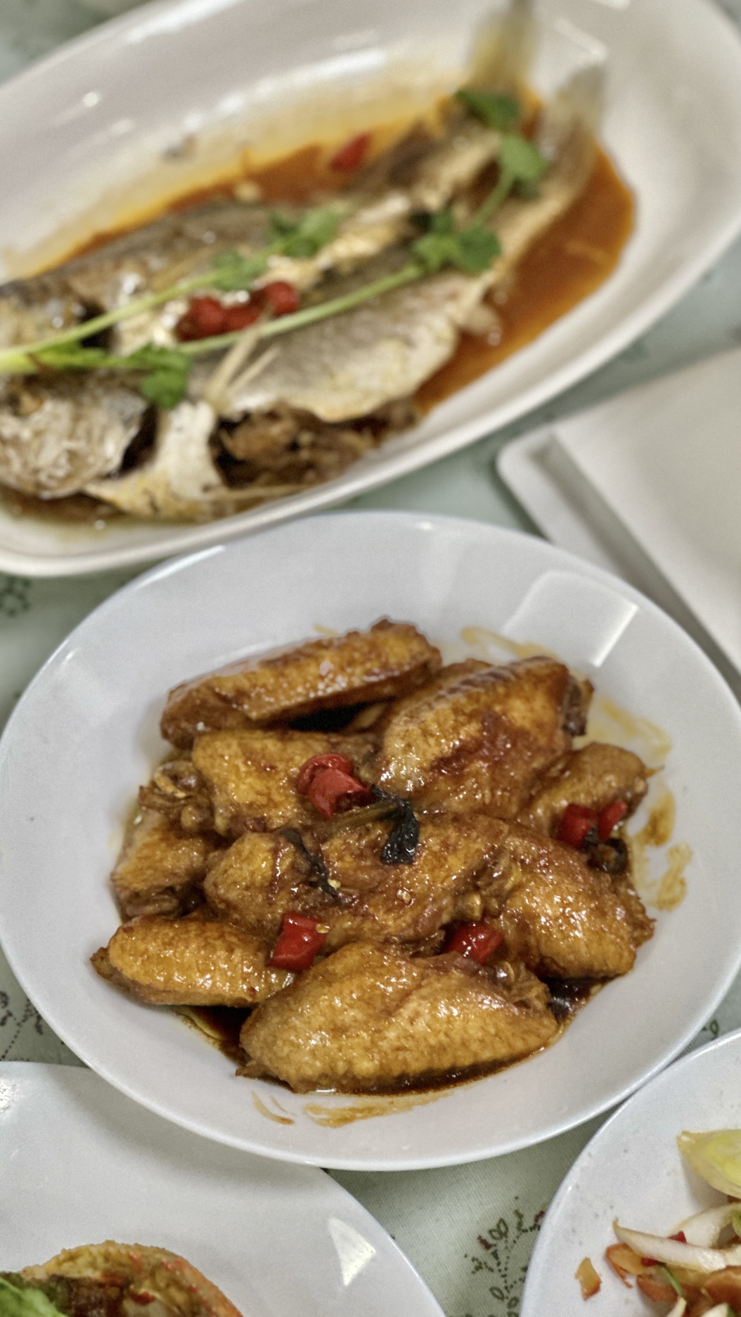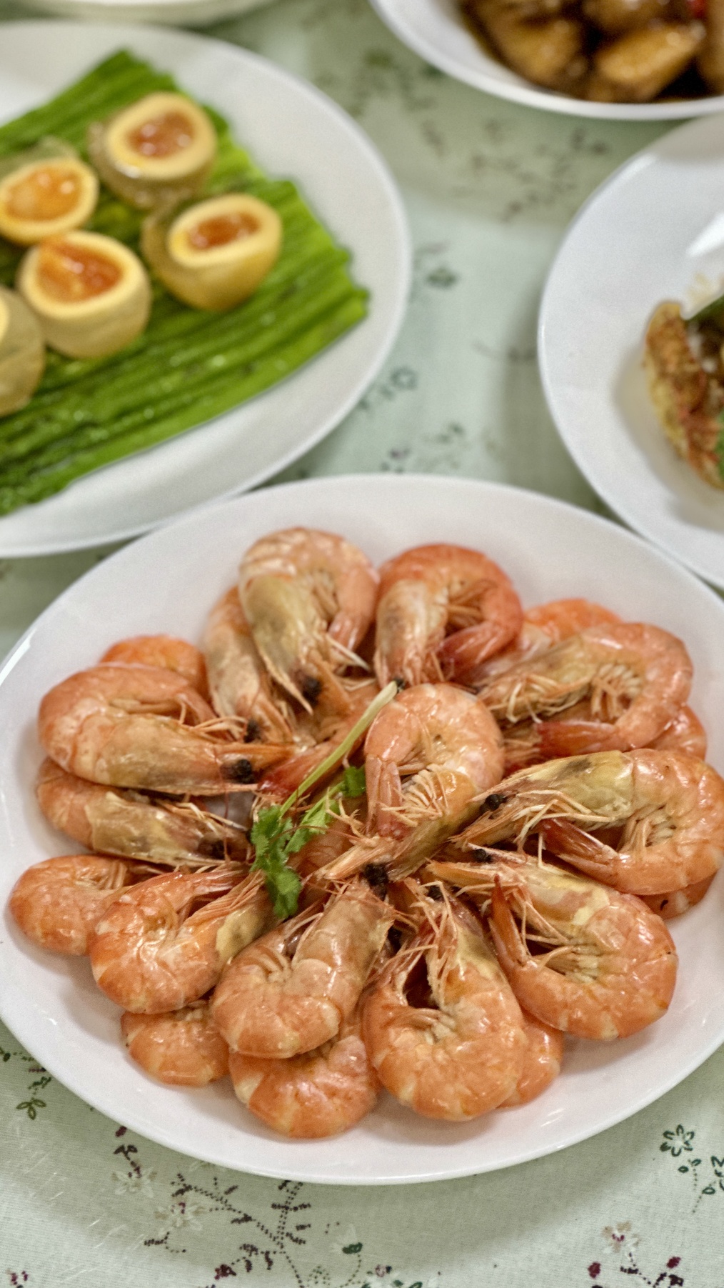 鸡尾虾,猪耳朵,花生米,皮蛋瘦肉粥,鸡翅,塘桥蒸菜,