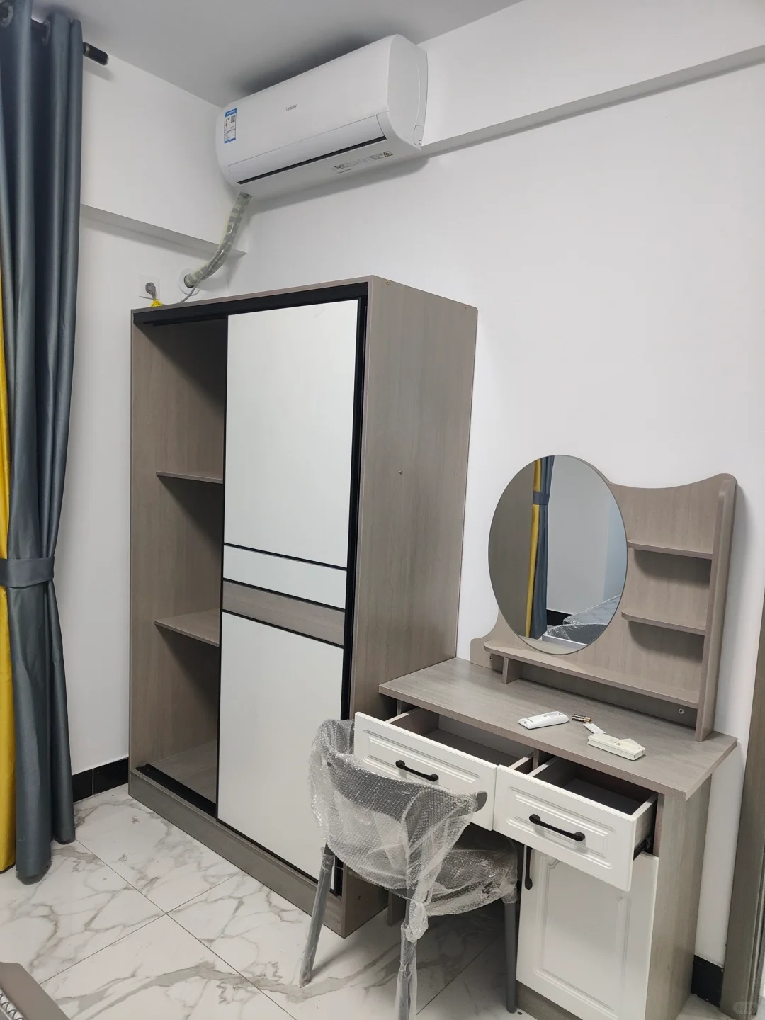 * 家具质感:打开柜门闻一下,是否有刺鼻气味;敲击柜体,如果声音空洞轻飘,可能是劣质颗粒板;检查家电是否都是不知名的小牌子。