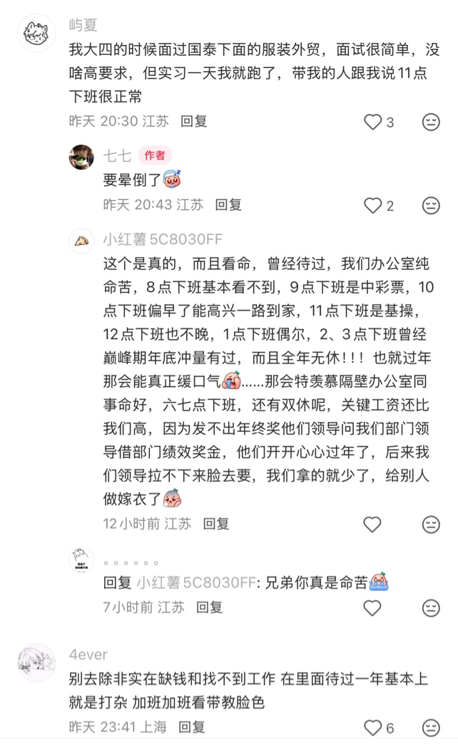 网上网友讲的GuoTai 晚上11点下班是基操? 12点下班也不晚?