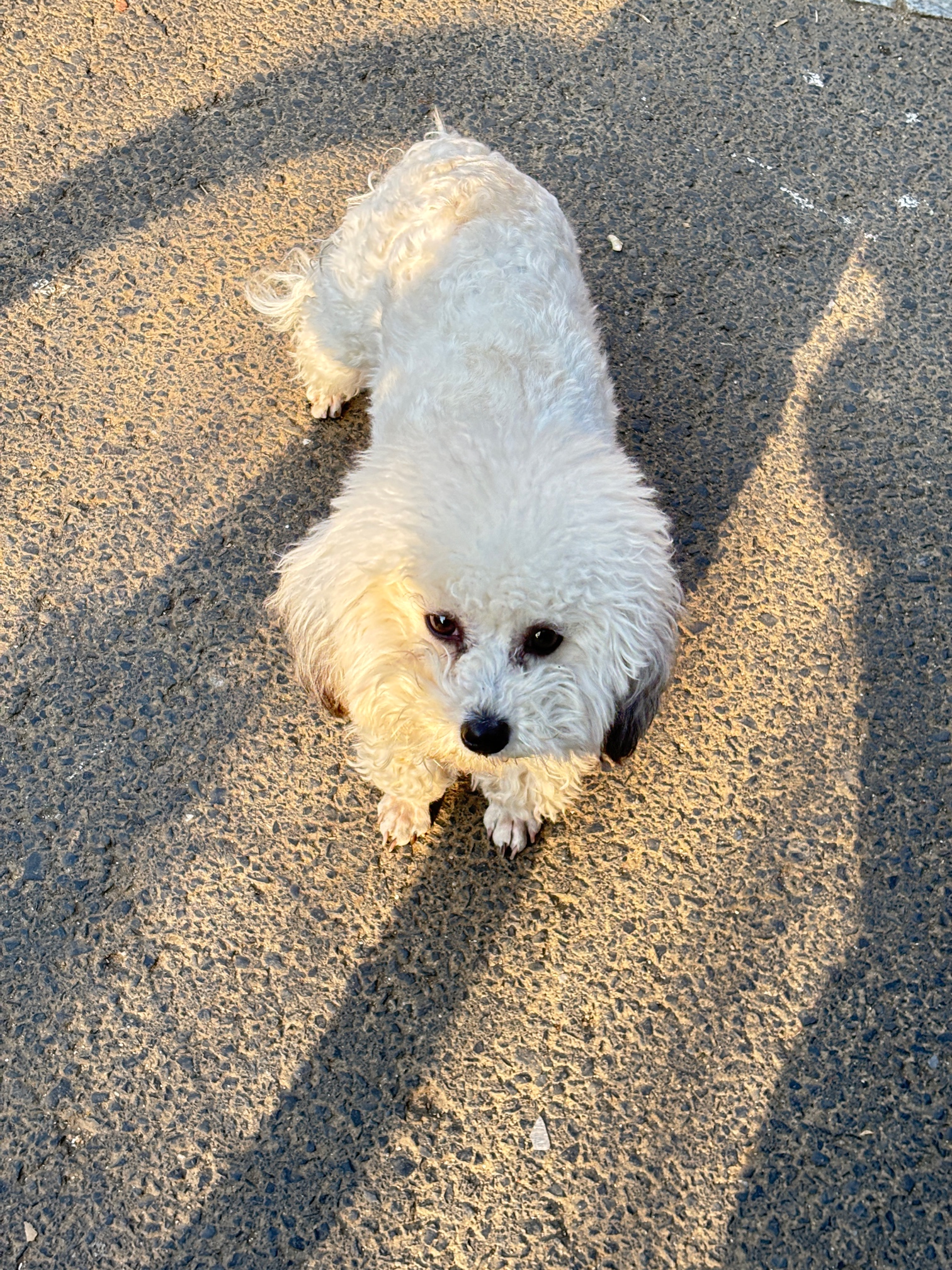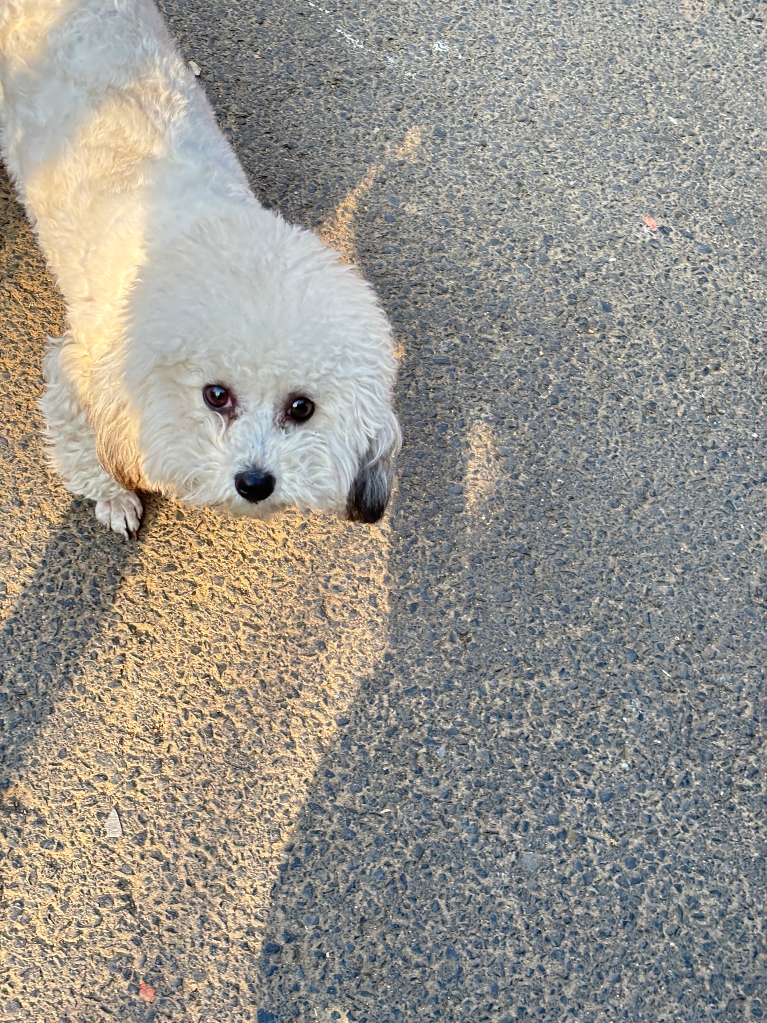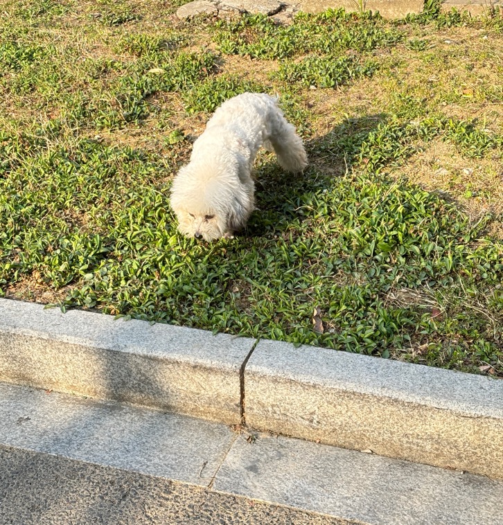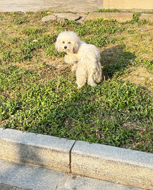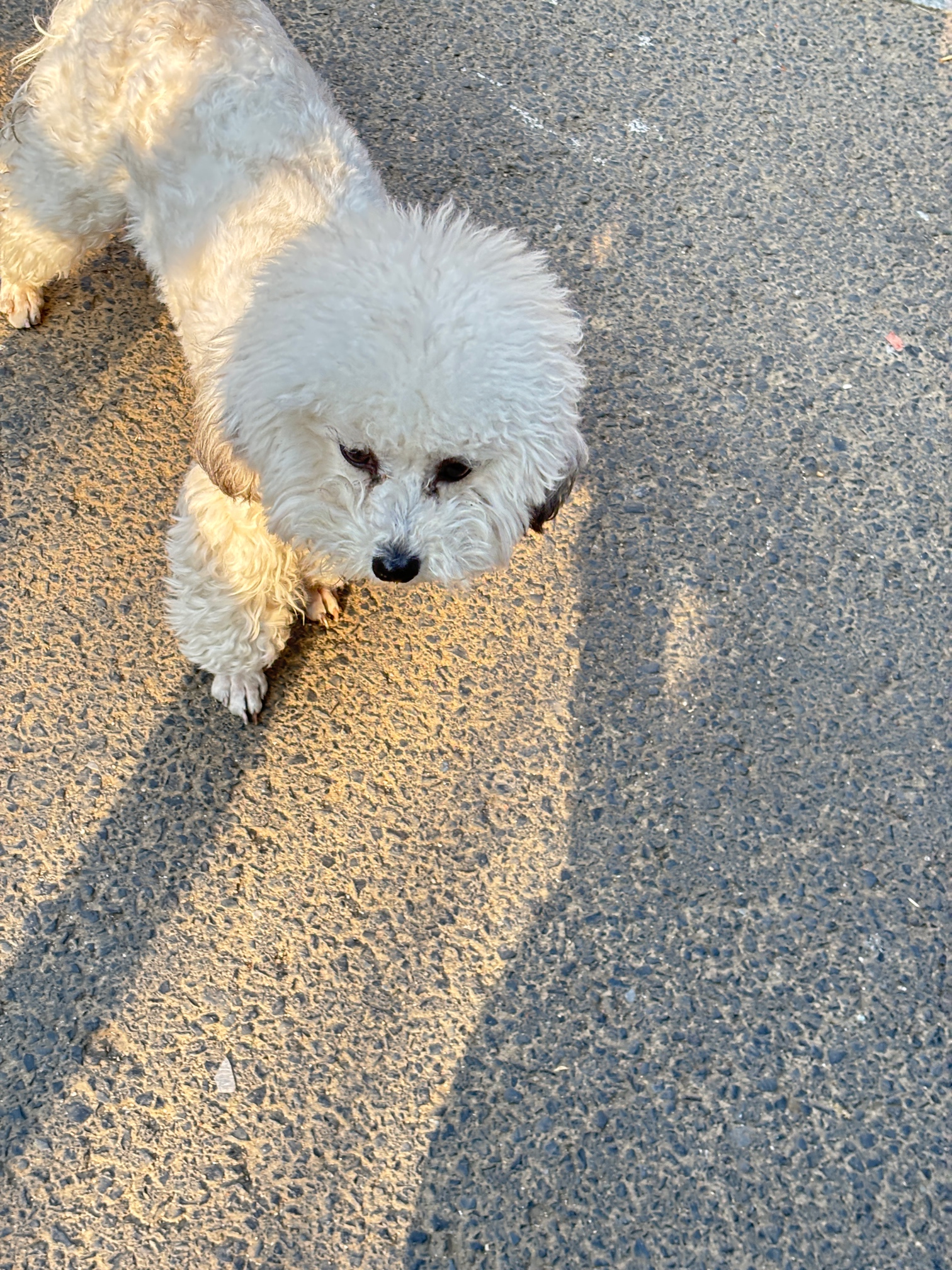 路遇一只流浪狗,看着像比熊,单看脸的话还比较清秀