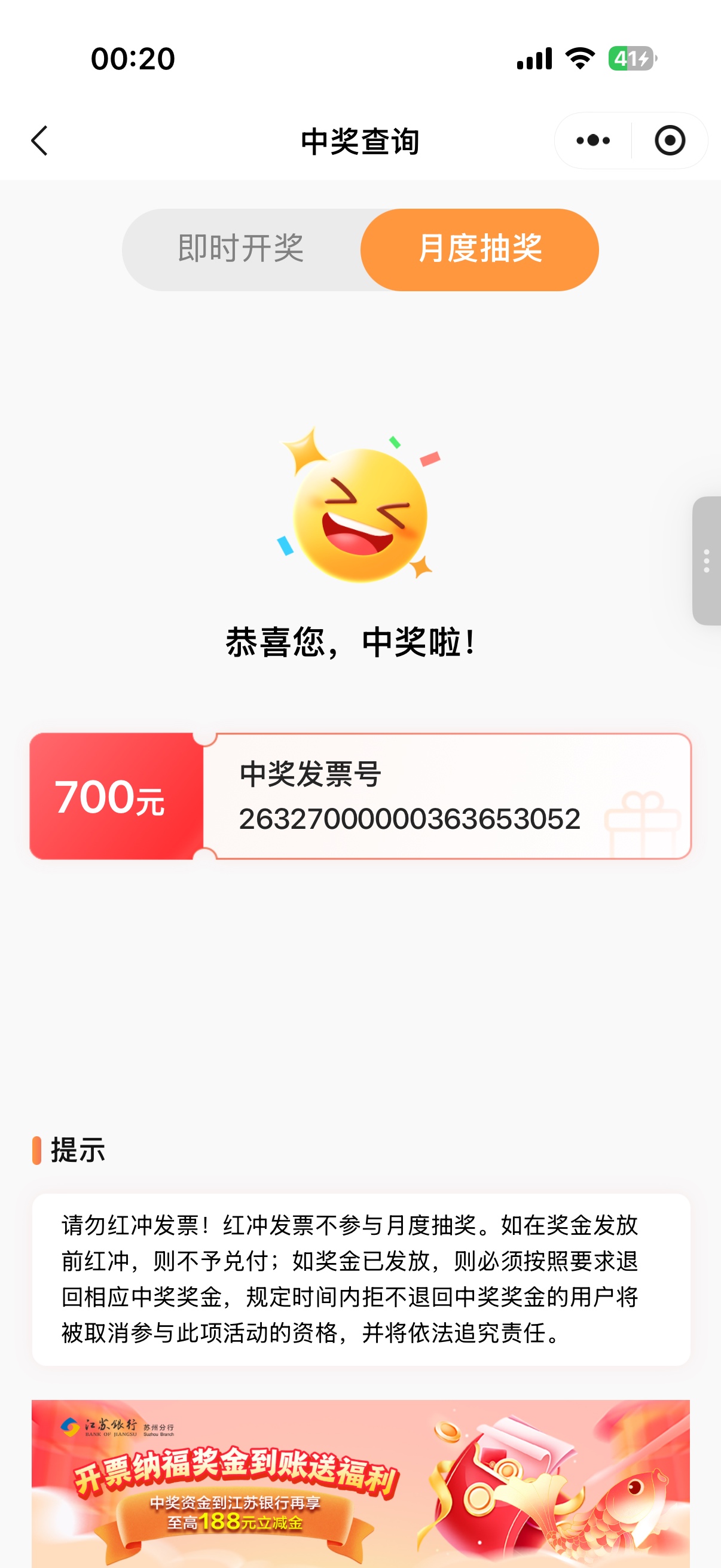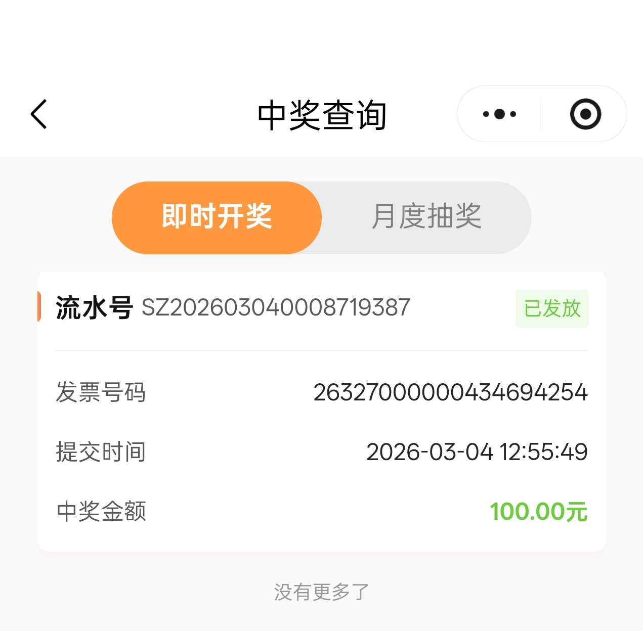 中了几次小的,月度的没有