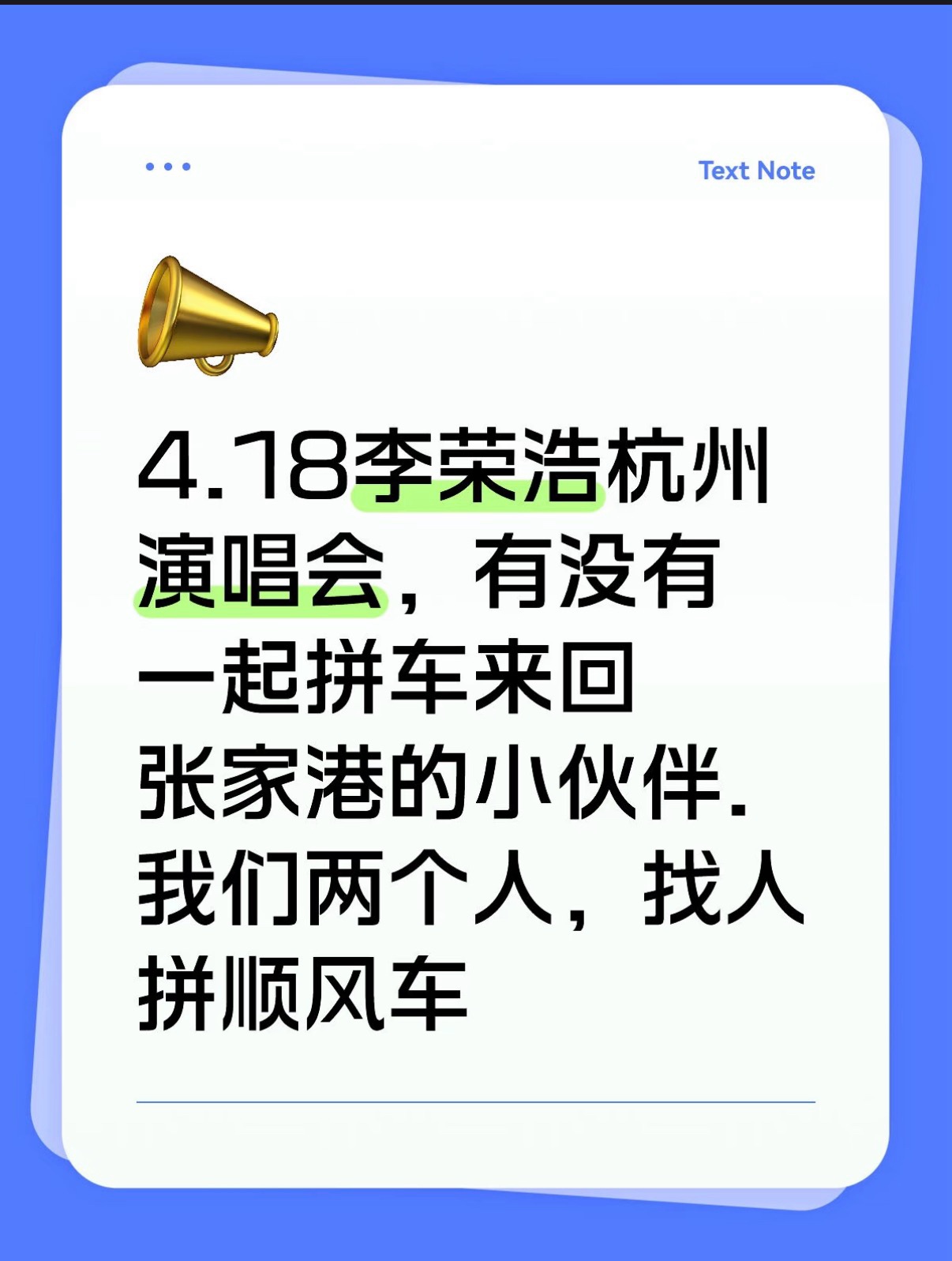 拼车李荣浩演唱会,当天来回!