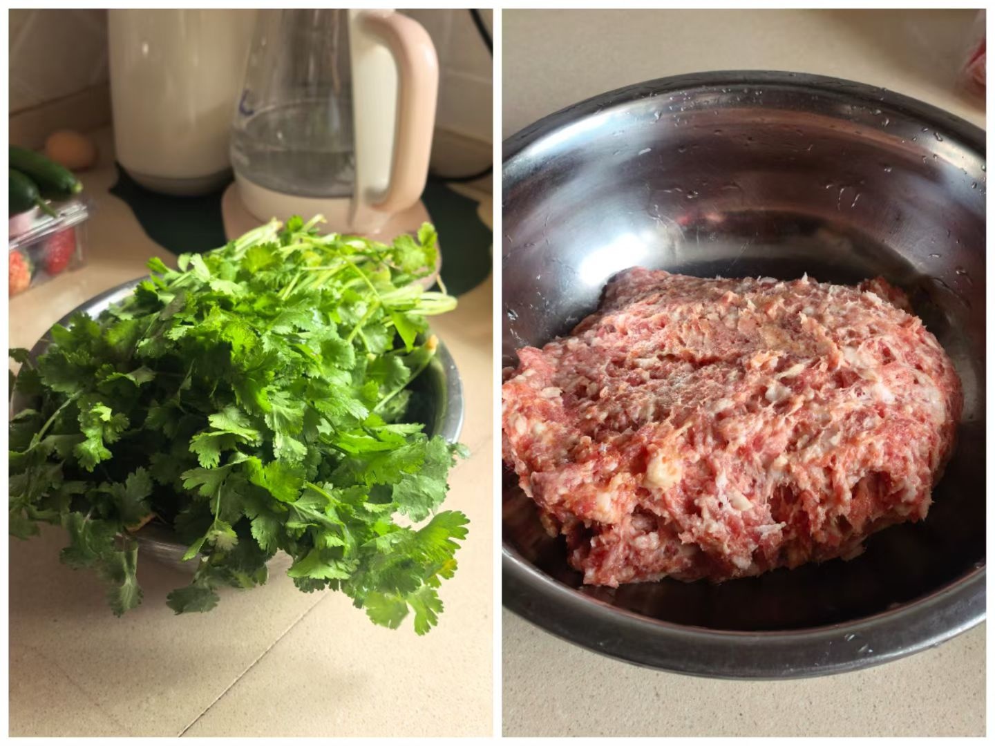 荠菜芹菜都做过的,想试试香菜的,没想想到很好吃