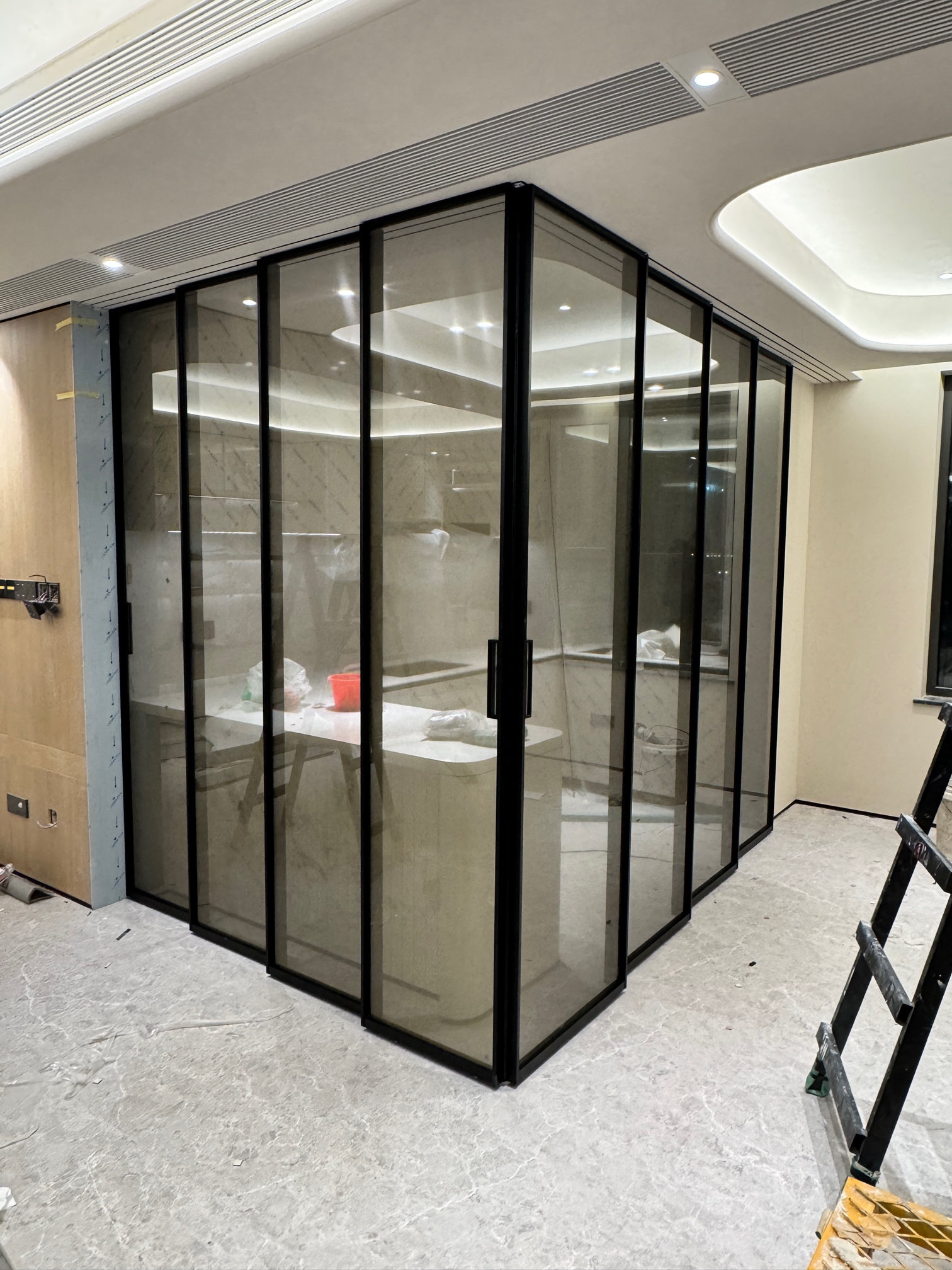 这极简门的落地效果。实景拍摄。型材我们专门开模定制。