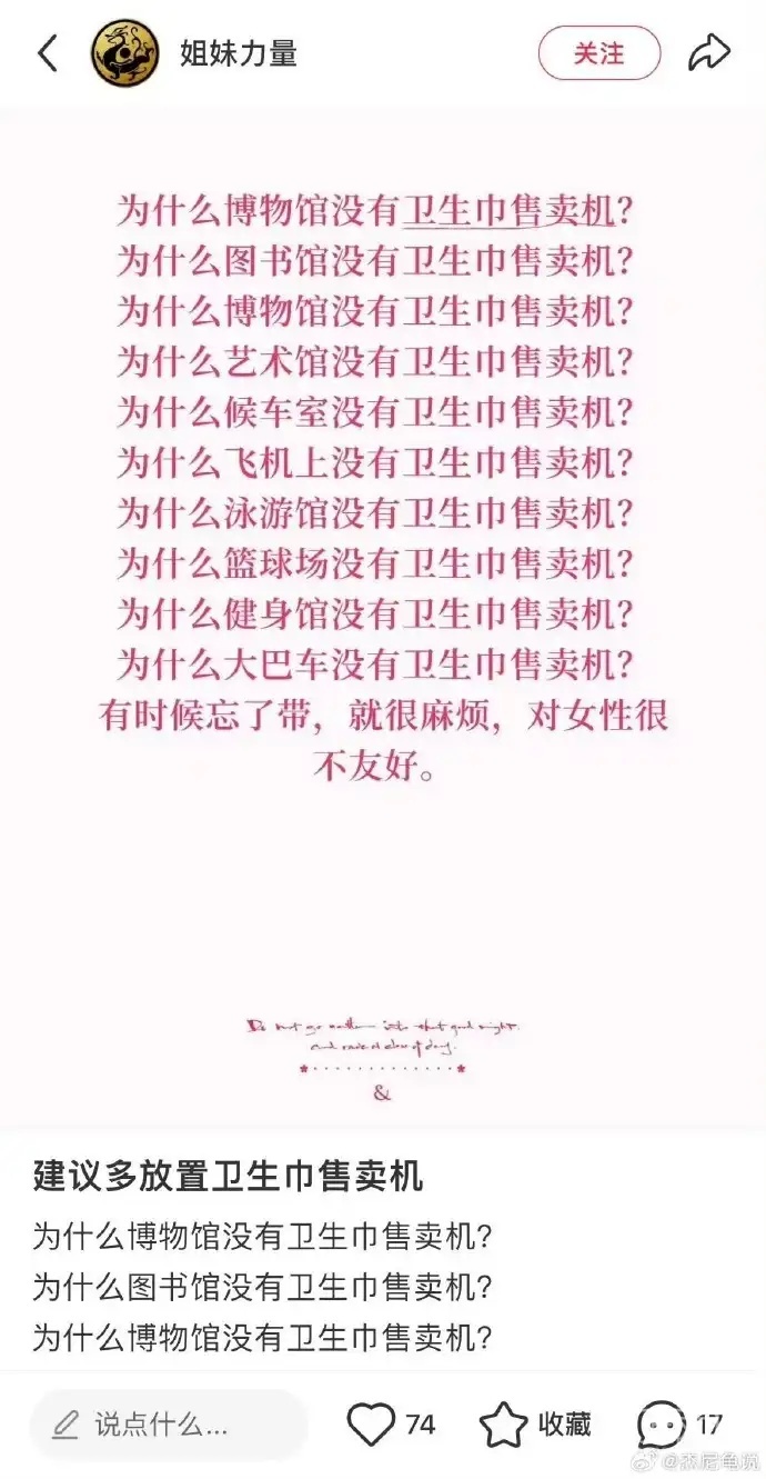 提这个女人真他妈作,哪个女的没包?包里自己不会备几个