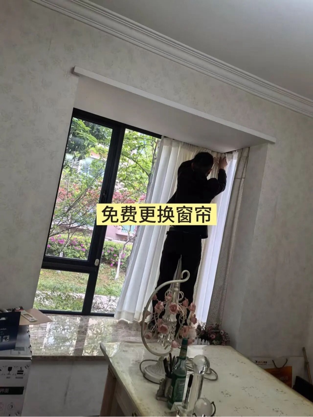 2 免费更换窗帘:选了简约大气的纯色款,和墙面颜色很搭,立刻有了“样板间”的感觉。