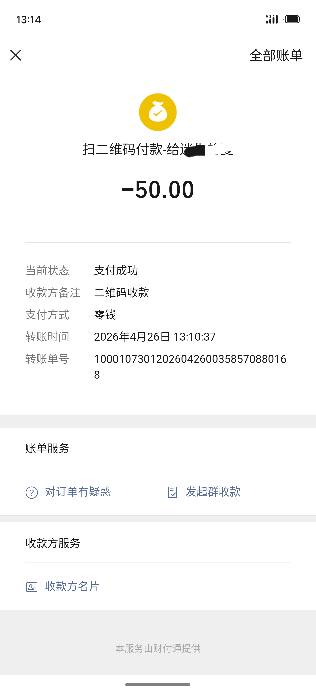 我看着俩人挺诚恳的,善心大发,扫给她俩50块钱吃饭