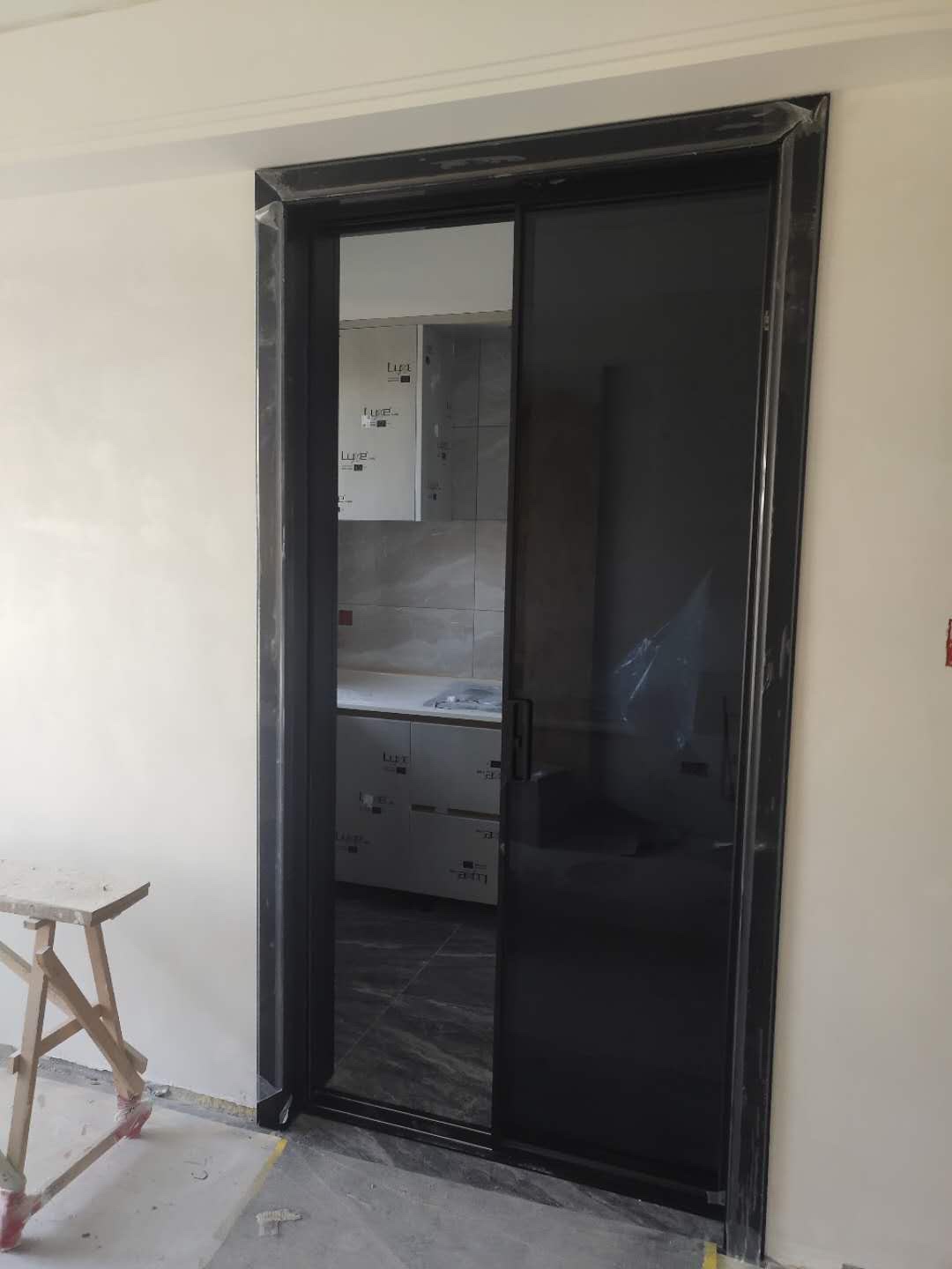 进度更新:巨丑塑钢移门拆走了,简易小便池按好了,还贴心的在墙上写了使用指南