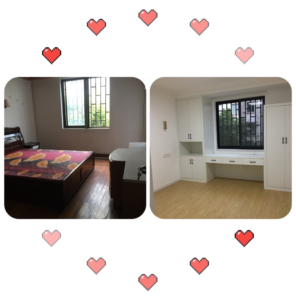 之前空的时候觉得房间还挺大,但因为我想多要柜子每个房间都是两面柜子,再把床一放