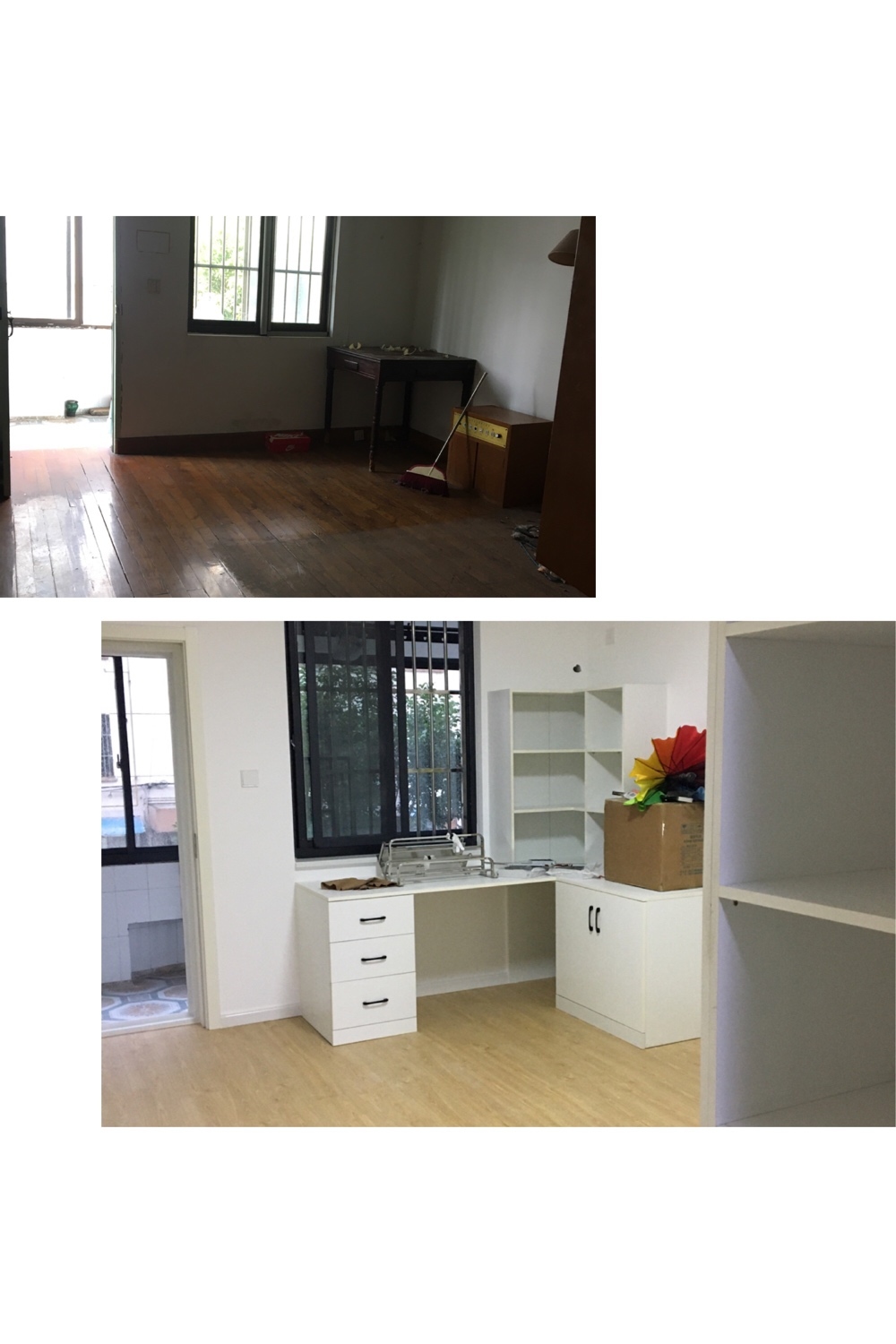 地板、衣柜基本完成终于快结束了,但发现越是做到后面,细致活就越容易出问题,还是得把心放大之前空的时候觉得房间还挺大,但因为我想多要柜子每个房间都是两面柜子,再把床一放估计以后地板可以跪着抹了,太小