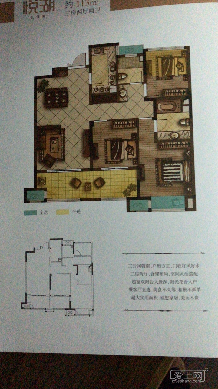 113户型真的很不错的,3开间朝南,双阳台双卫,完美户型,就是餐厅小一点点。