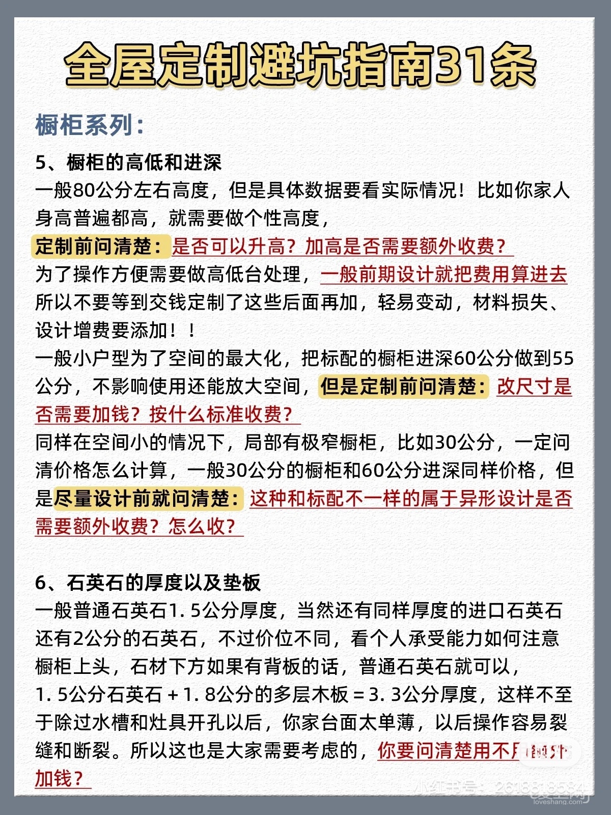 什么釉面砖,通体砖,抛光砖,抛釉砖,光研究一个建材就够心累的。后面还有那么多要去选,头大,又想选好的,又想要便宜不被宰,只能自己多做功课了,另外讲价也是门艺术咫尺装饰 发表于 2023-03-10 14:19