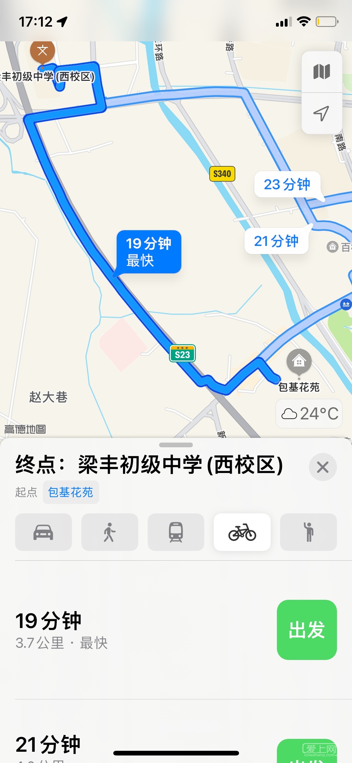包基到梁丰西,我导航上看骑车要30分钟呢