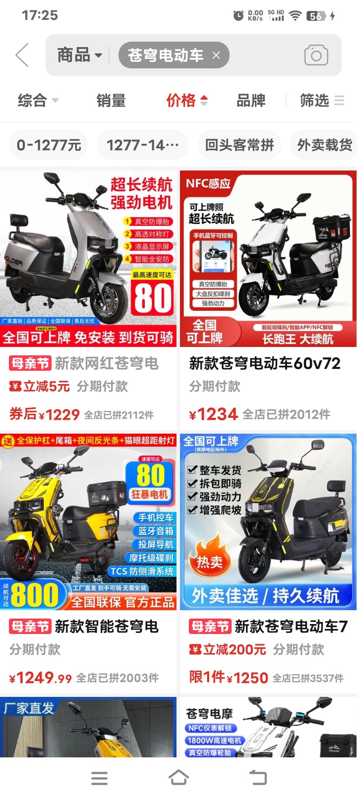 拼多多上苍穹1860,就怕不正宗!,我又看了一个三千瓦的电机490块,带轮胎多120块, 一个三千瓦的控制器260块,如果买回来自己装 ,自己的电机只能卖废品了,,,