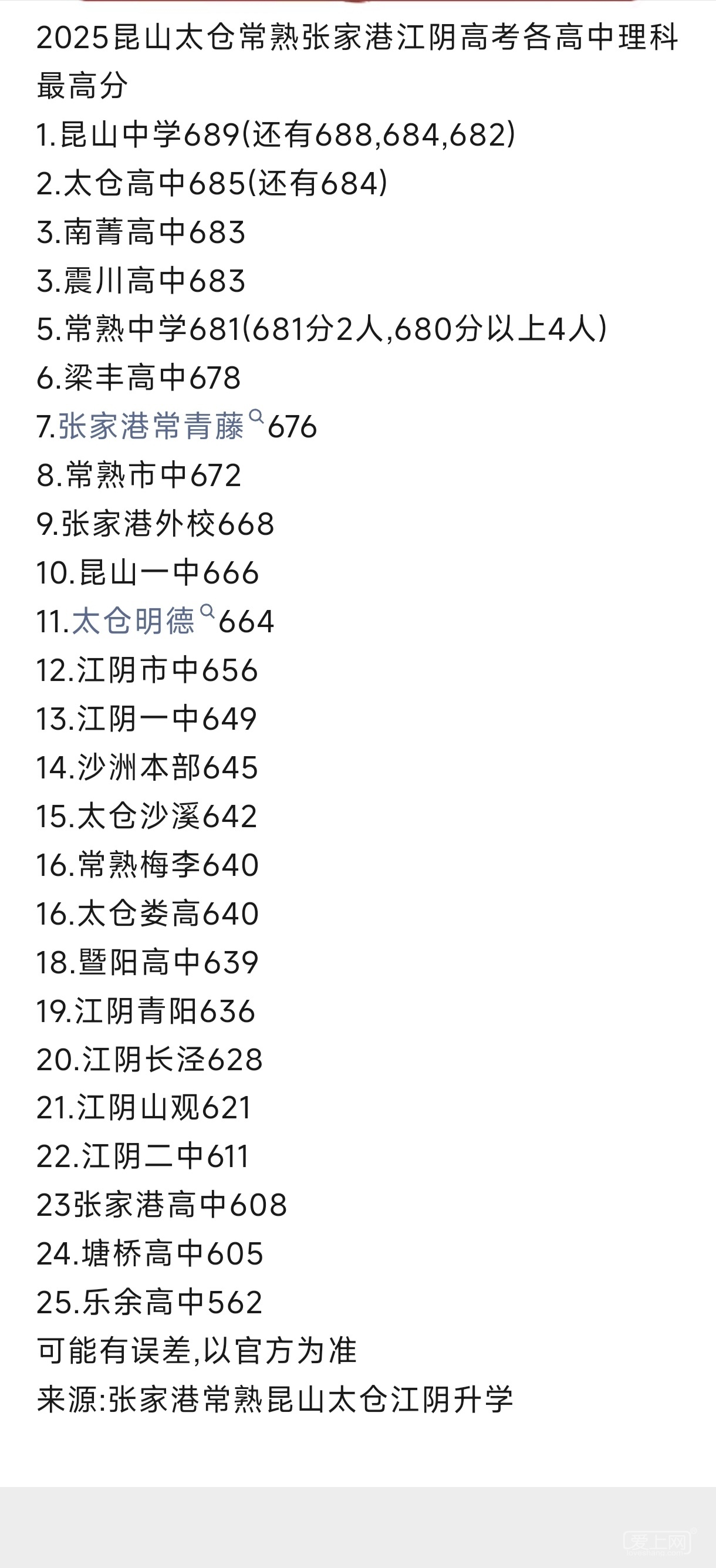今年高考四市,港城倒数第一,常熟倒数第二,两个都没有裸分清北的,常熟最高681,港城最高678,拉胯的不得 ...