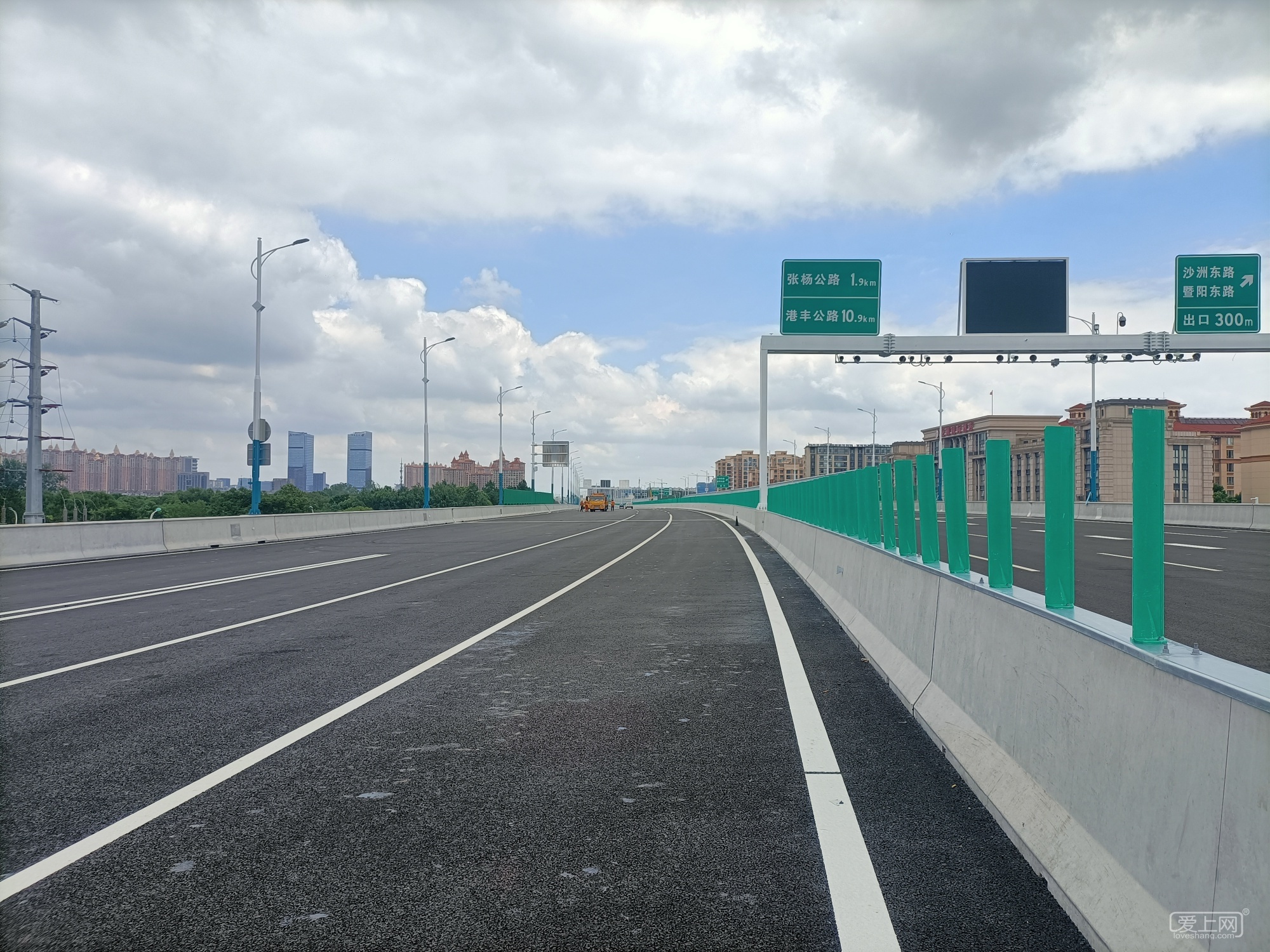 北二环路,沙洲东路口,南苑东路口,华昌路苏虞张路口都可以上下了,张杨公路立交桥连接口也快好了,已连通北三环晨丰公路,