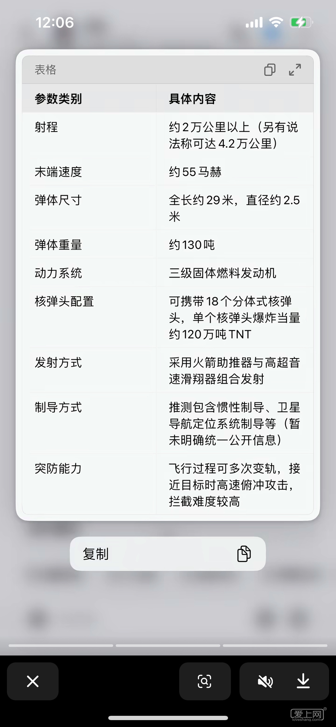 其中末端速度官方公布是27马赫,55马赫的速度未得到官方证实。按中国人的秉性,他说27应该没问题基本肯定能超的,就像我朋友波波说自己酒量6,7两的样光,然而弄弄就要喝一斤朝开。