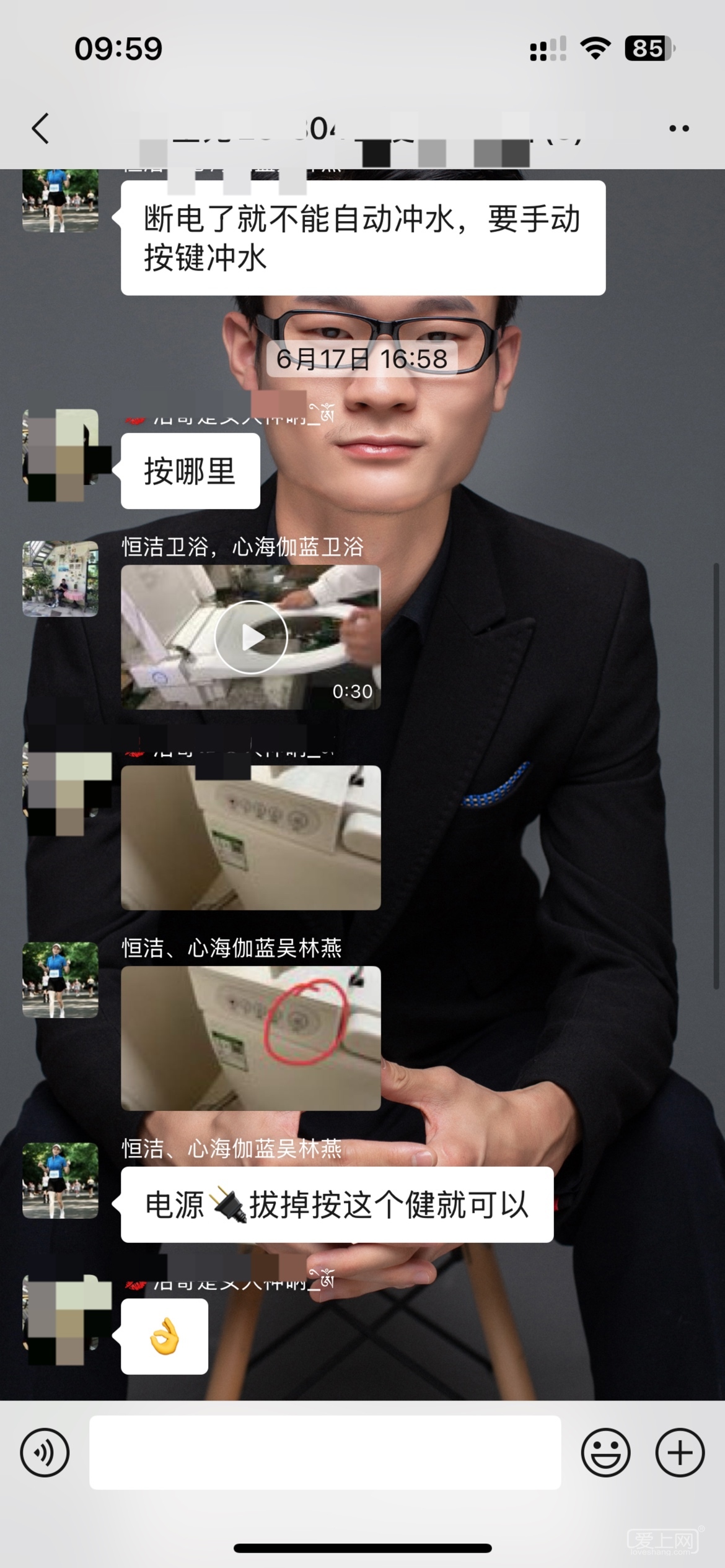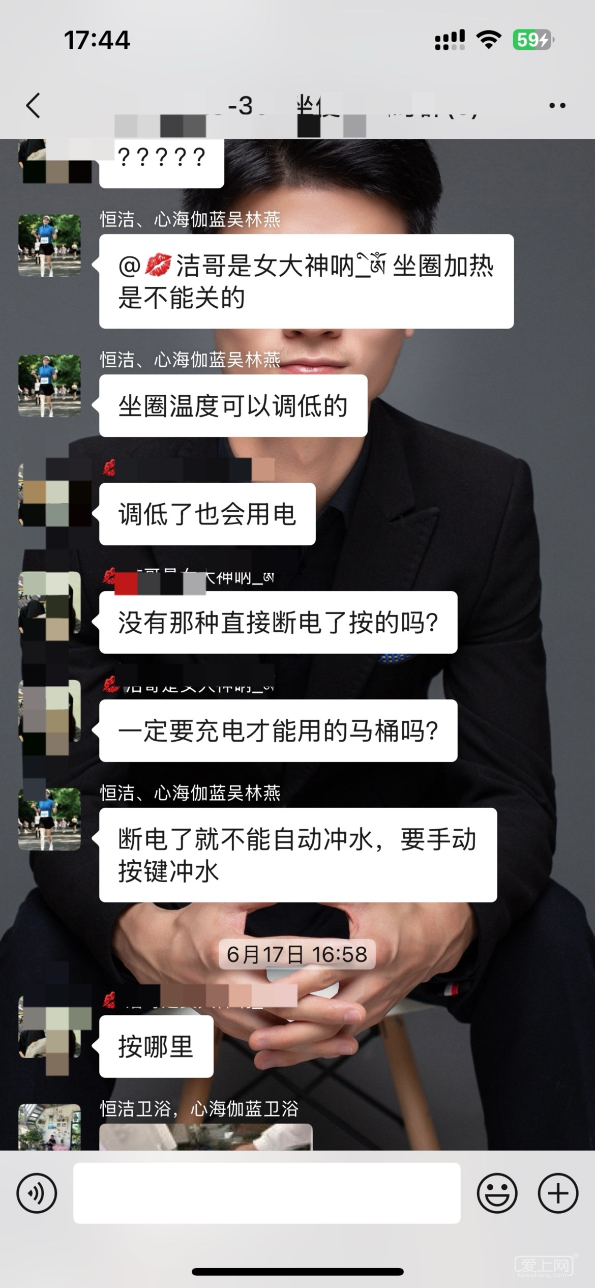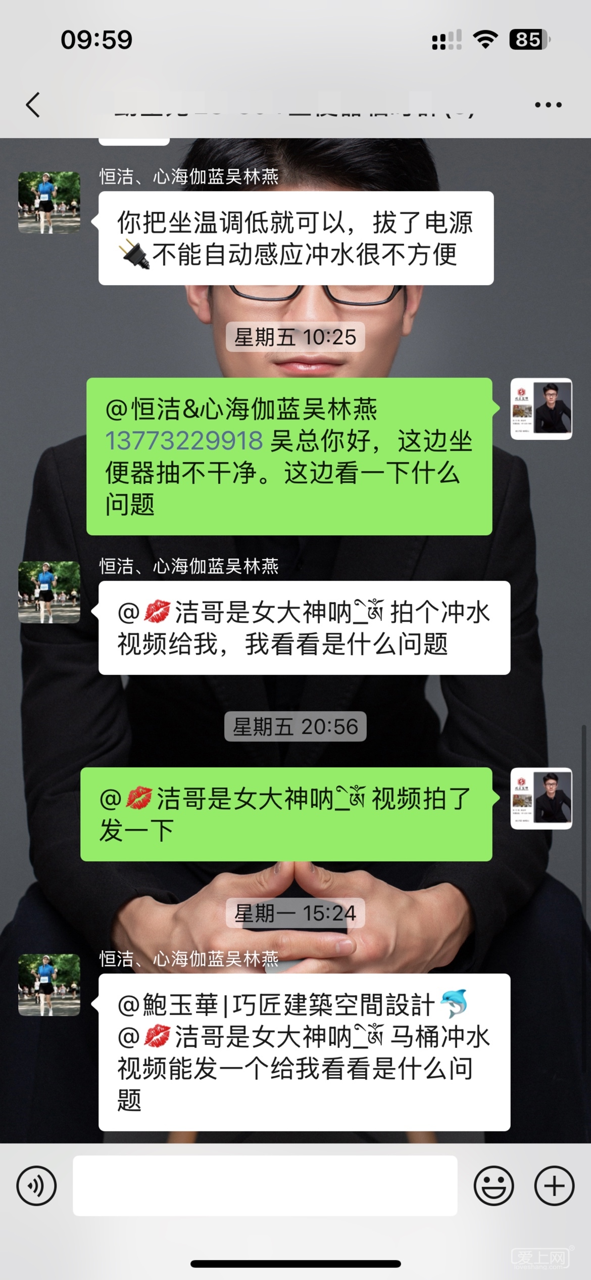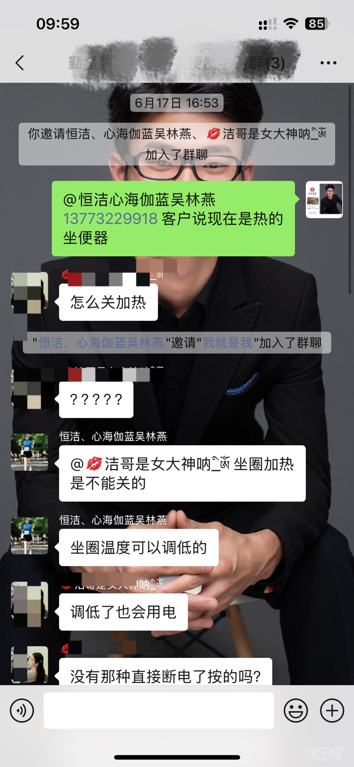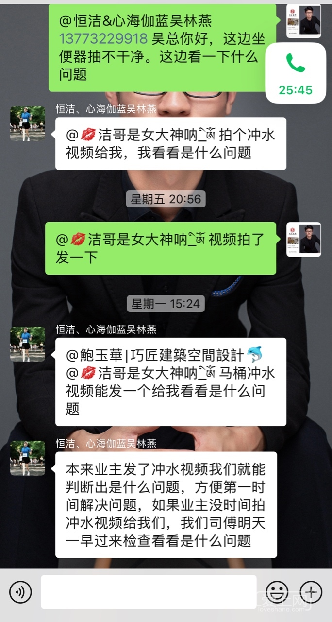 坐便器安装好几个月了,她前几天说坐便器有问题,我第一时间在群里艾特坐便器供应商,供应商这边也是联系客户,客户不回复也没有说时间。