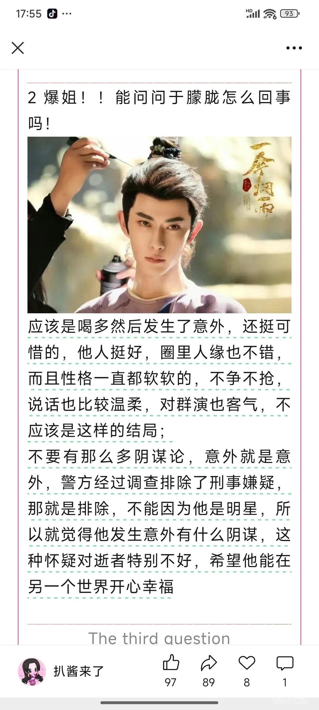 据说被一个导演叫程青松给弄死的,现场伪造成自杀