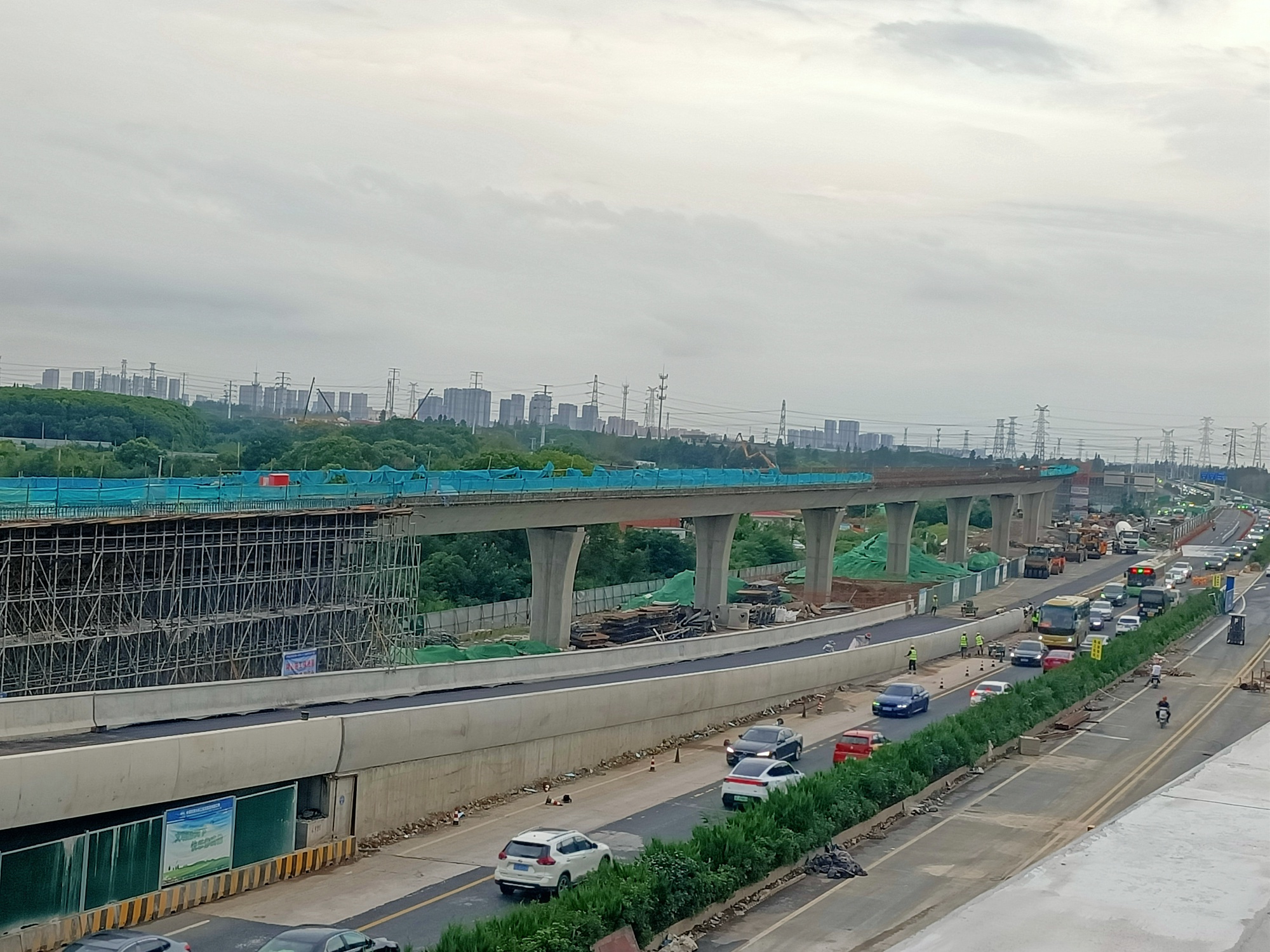 在铺摊沥青路面了,可以先开通,缓解进城口地面交通拥挤堵塞