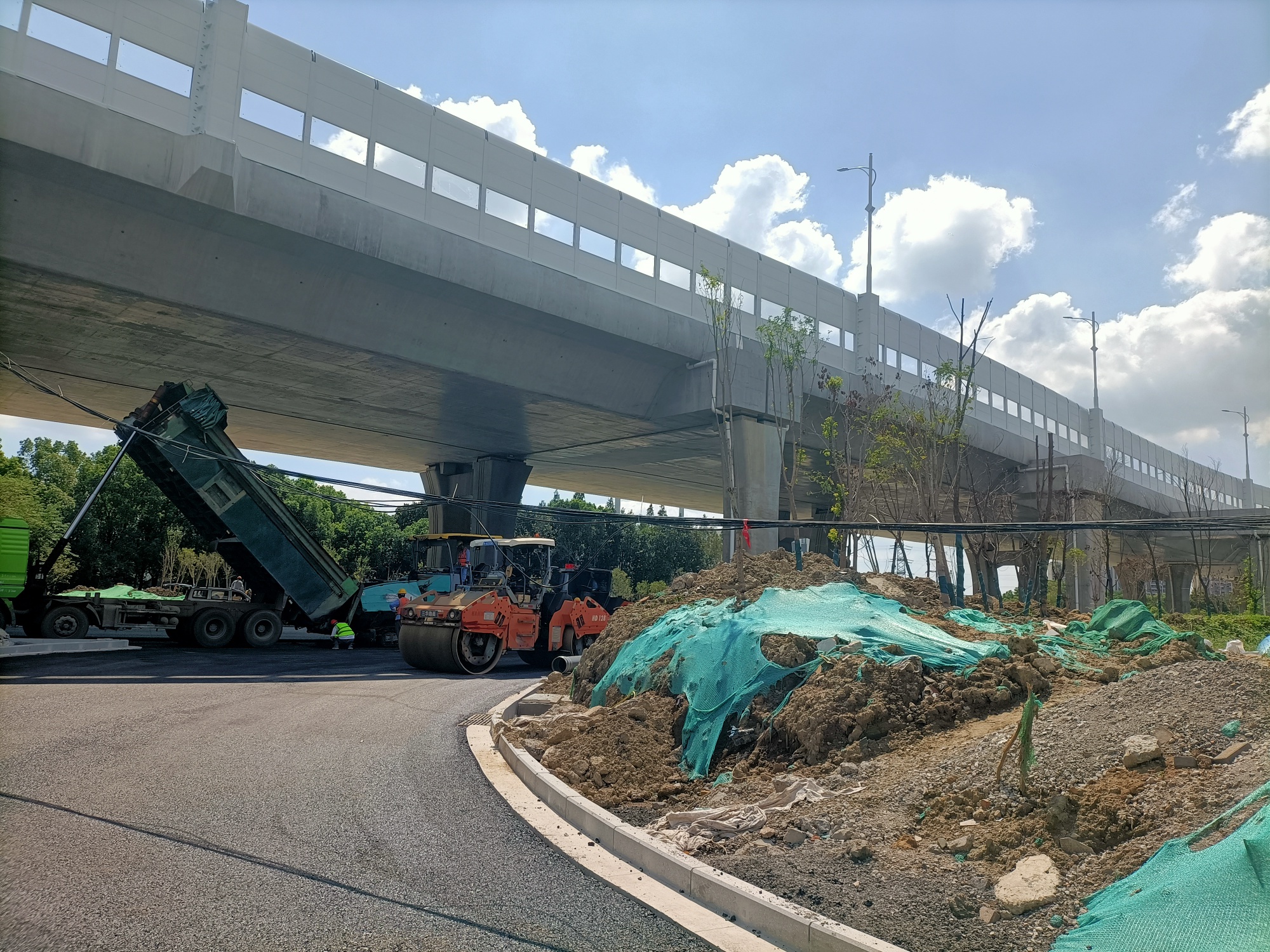 今早看见北庄路口至金港大道路口的地面道路北侧大批机械在作业,看近北庄路口的地段,好像是最后一遍结束了。