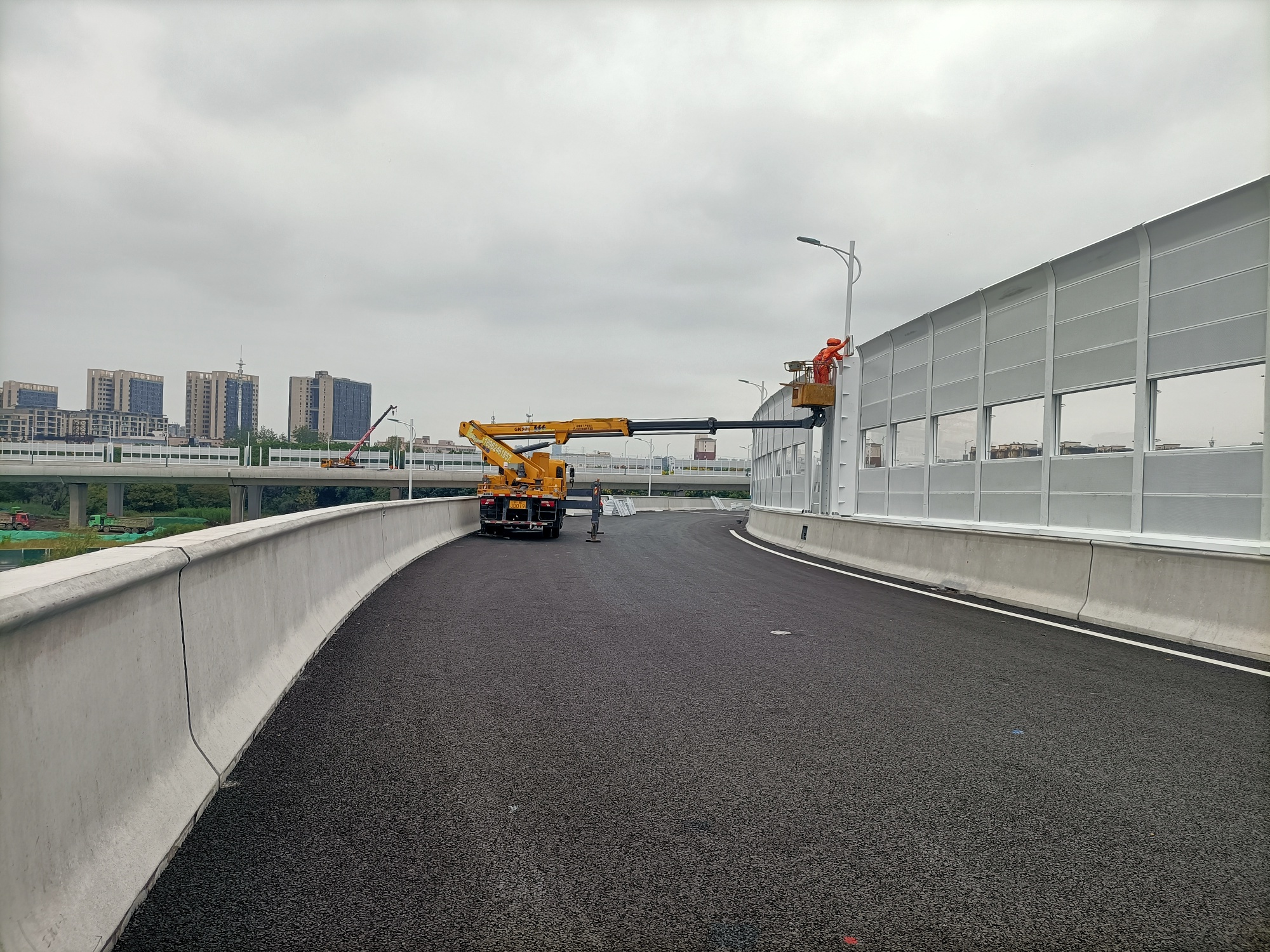 南二环高架道路两边已安装好了一段