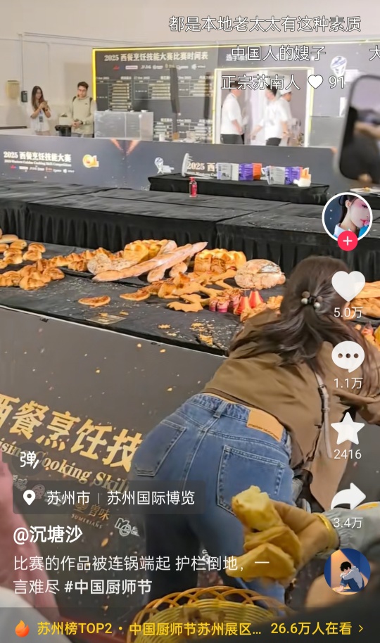 苏州厨师节展区,参加比赛的面包被大妈整盘抢走