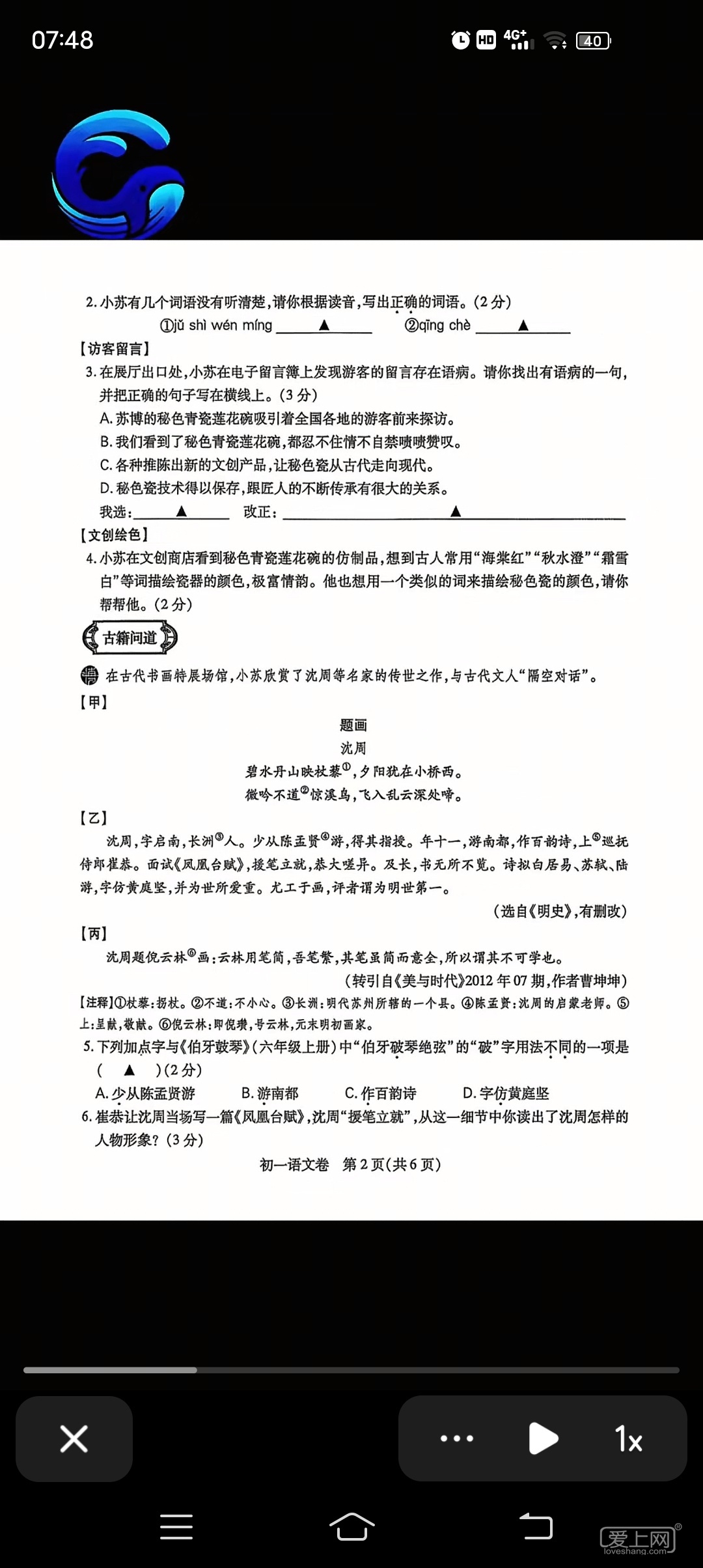 语文常考到关于苏州的 你说公不公平 哈哈哈哈