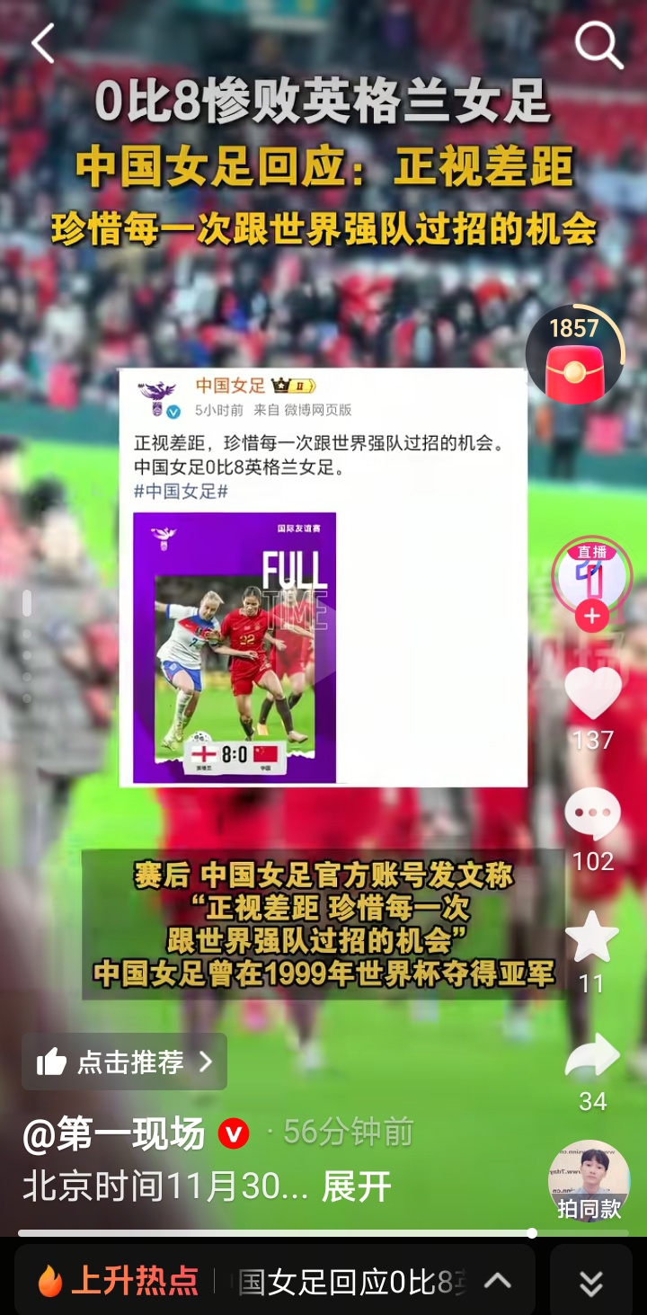 中国女足0:8英格兰女足 中国女足回应 正视差距
