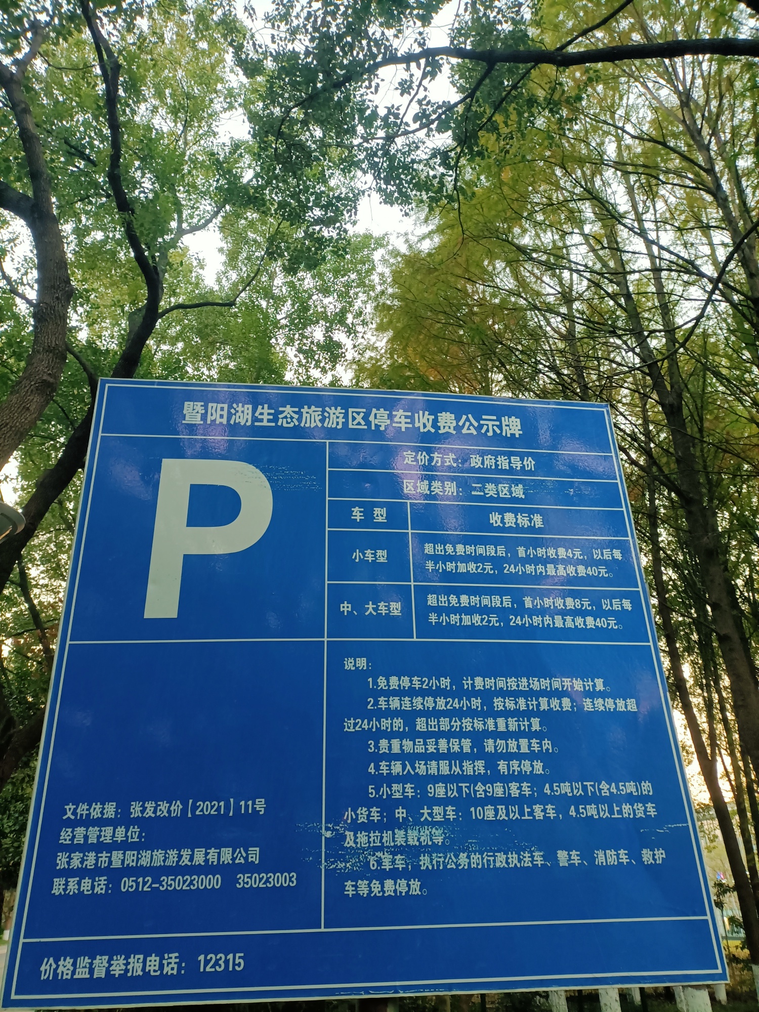 暨阳湖公园湖南路停车场,免费停车2小时后,每小时收费4元