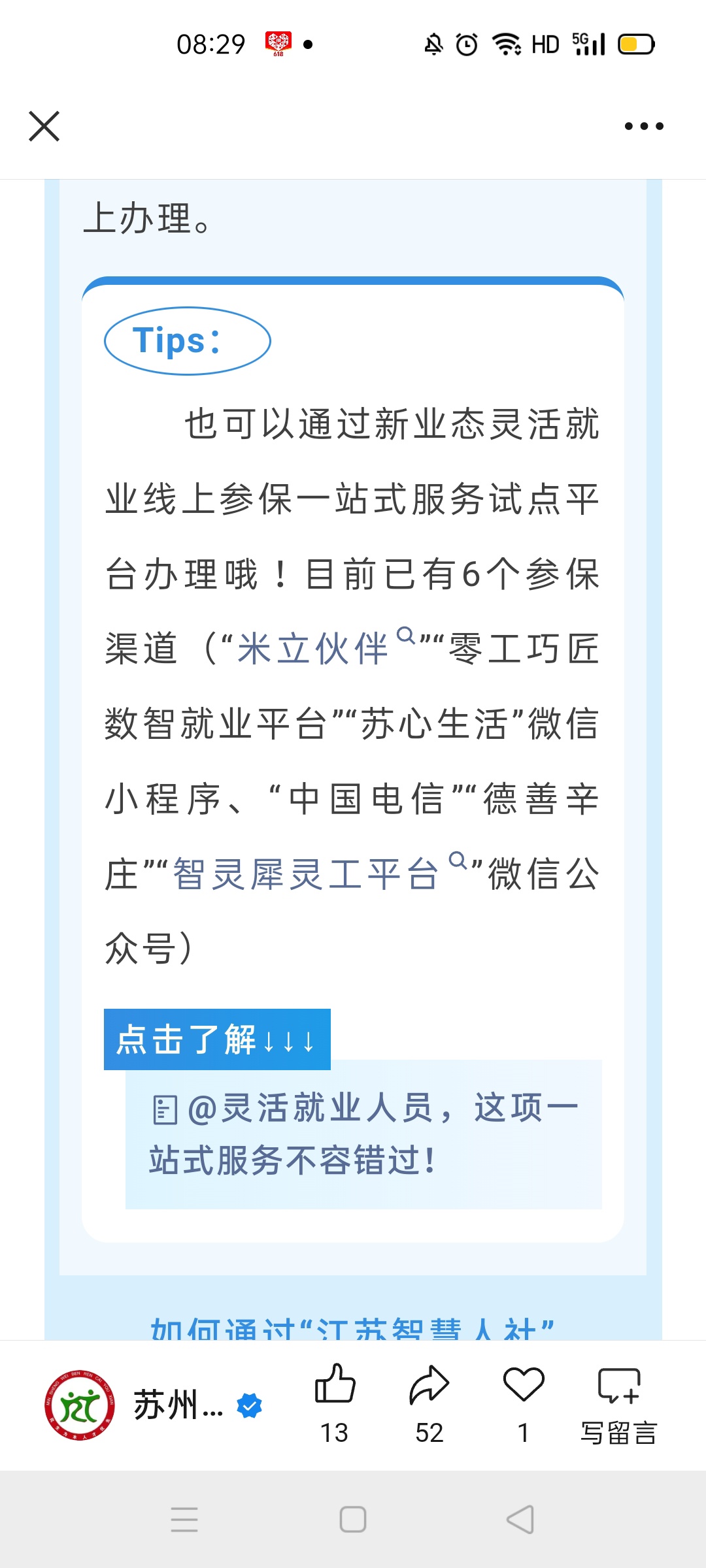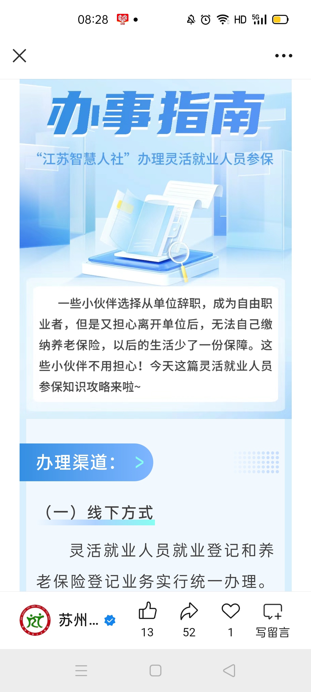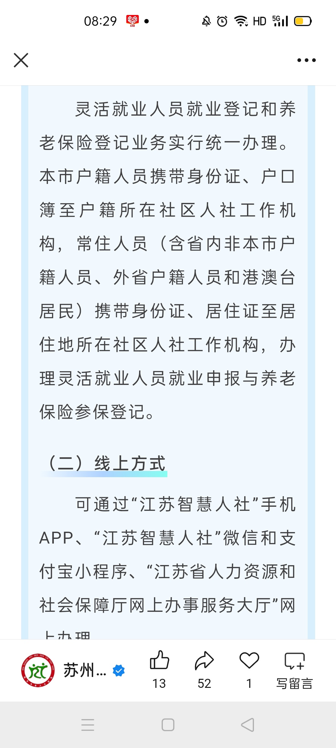如何通过“江苏智慧人社”办理灵活就业人员参保?