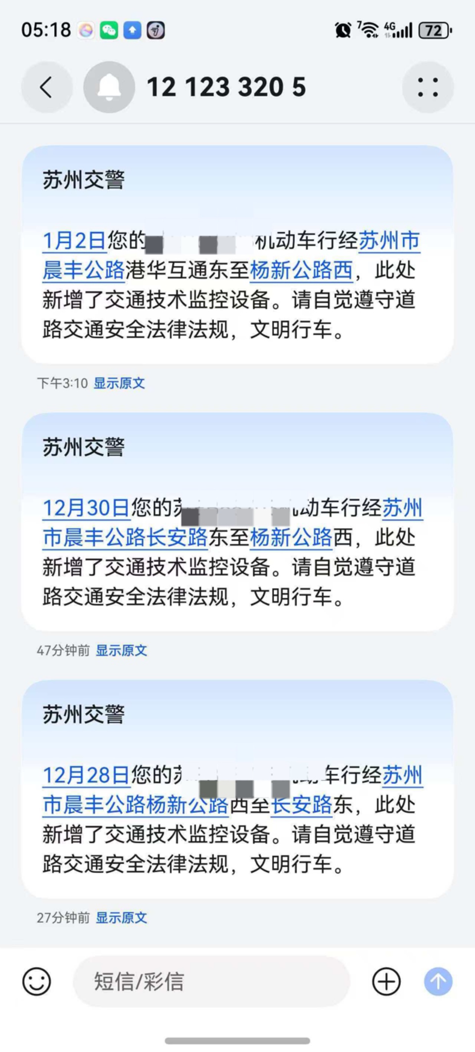 在收到这个之前,有没有收到试用期不处罚的违章信息?我这个月收到3个试用期不处罚,都是晨丰公路